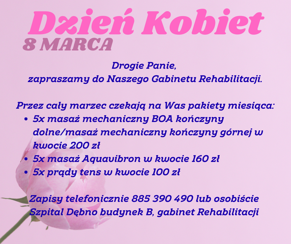 Drogie Panie, Zapraszamy do Naszego Gabinetu Rehabilitacji z okazji Dnia Kobiet.