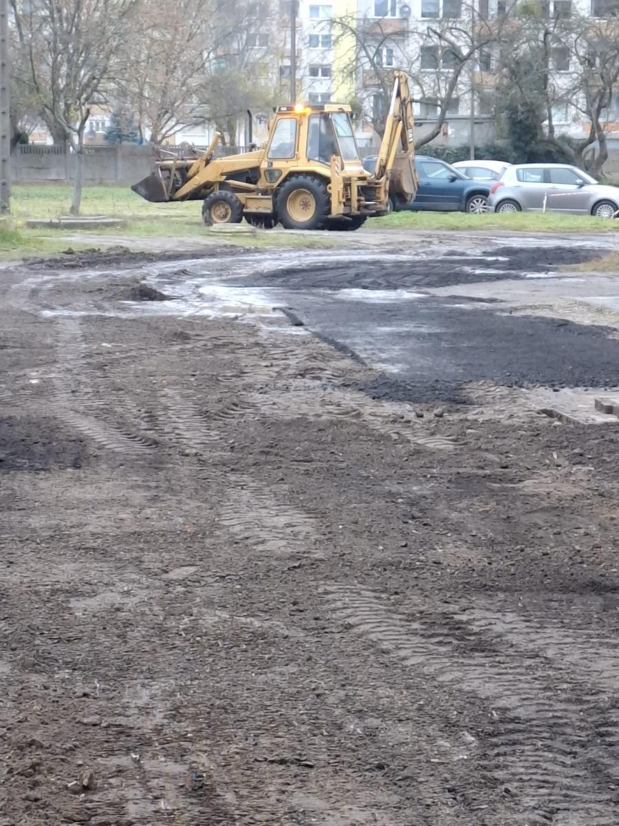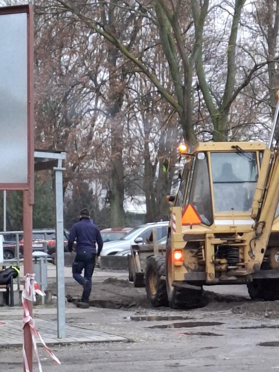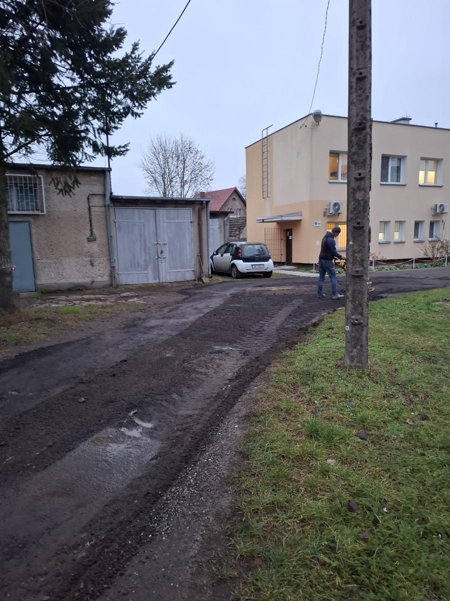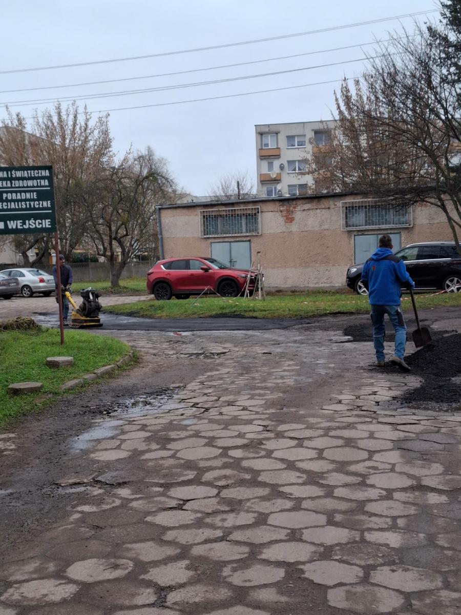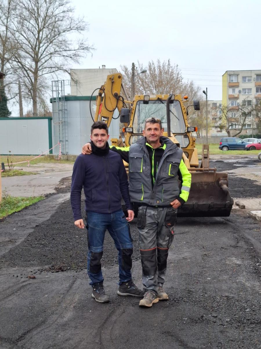 Nasi pracownicy i Pan Damian Mazur oraz Nikodem Mazur ciężko pracują aby nawierzchnia na terenie naszego szpitala w końcu nadawała się do użytku.