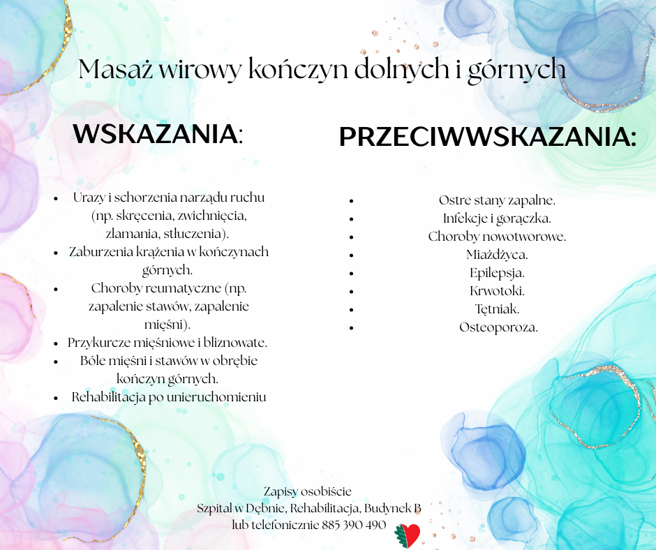 Gabinet rehabilitacji zaprasza na masaż wirowy kończyn górnych i dolnych.