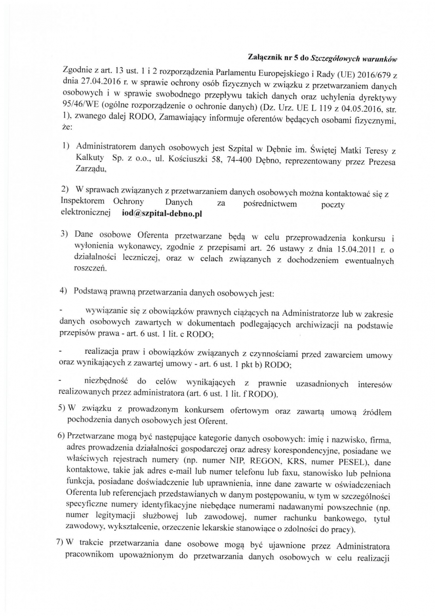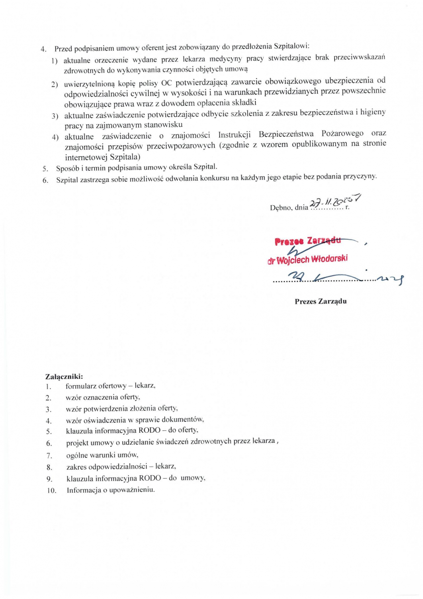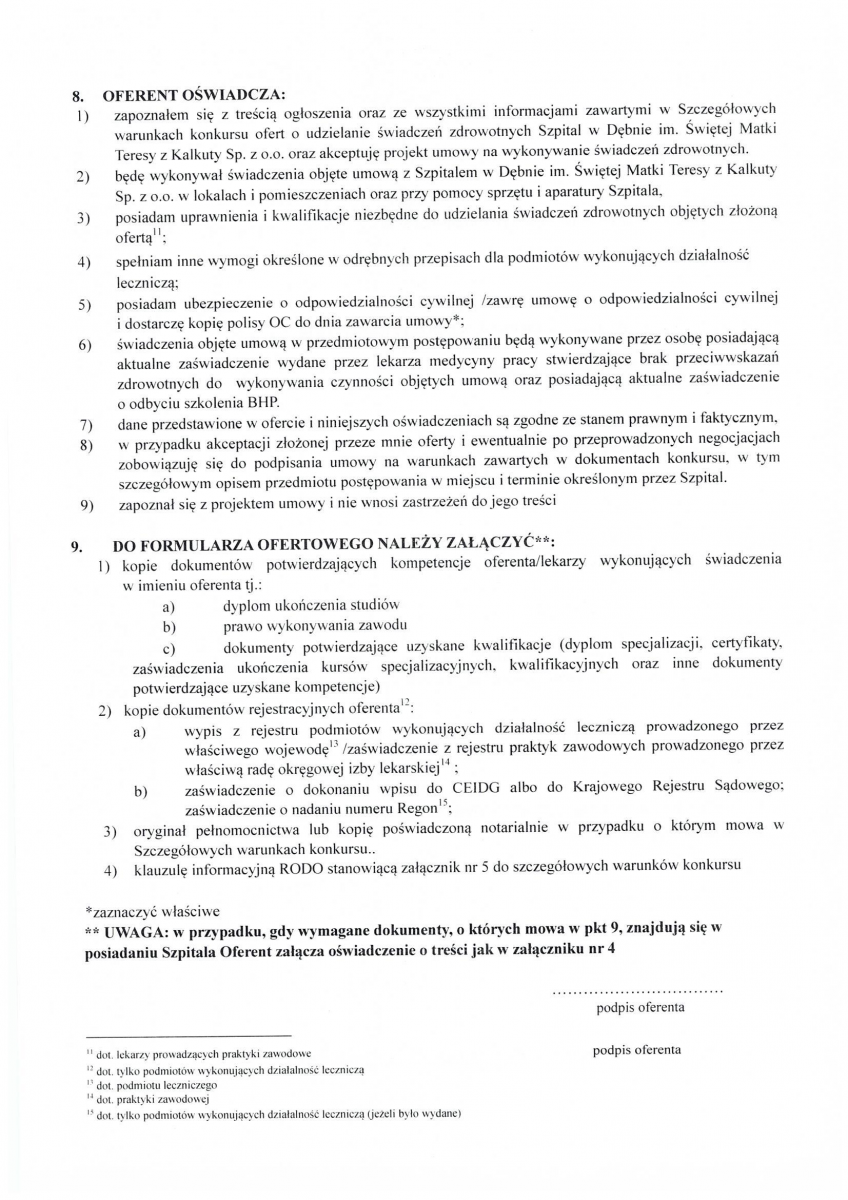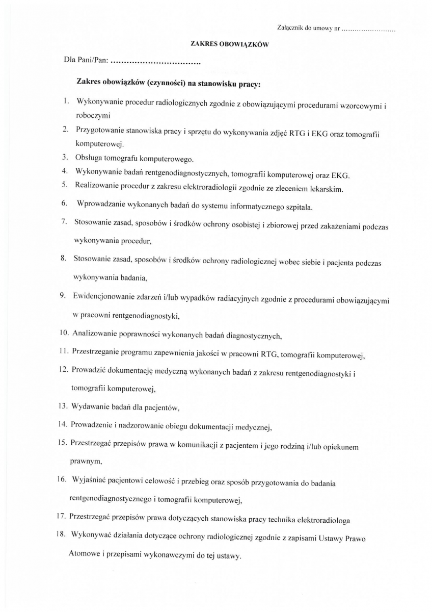 Konkurs ofert na udzielanie świadczeń zdrowotnych - wykonywanie badań tomografii komputerowej i badań rentgenowskich (TK oraz RTG) oraz badań USG w szpitalu w Dębnie - z zakresu świadczeń lekarskich, z zakresu świadczeń technika.