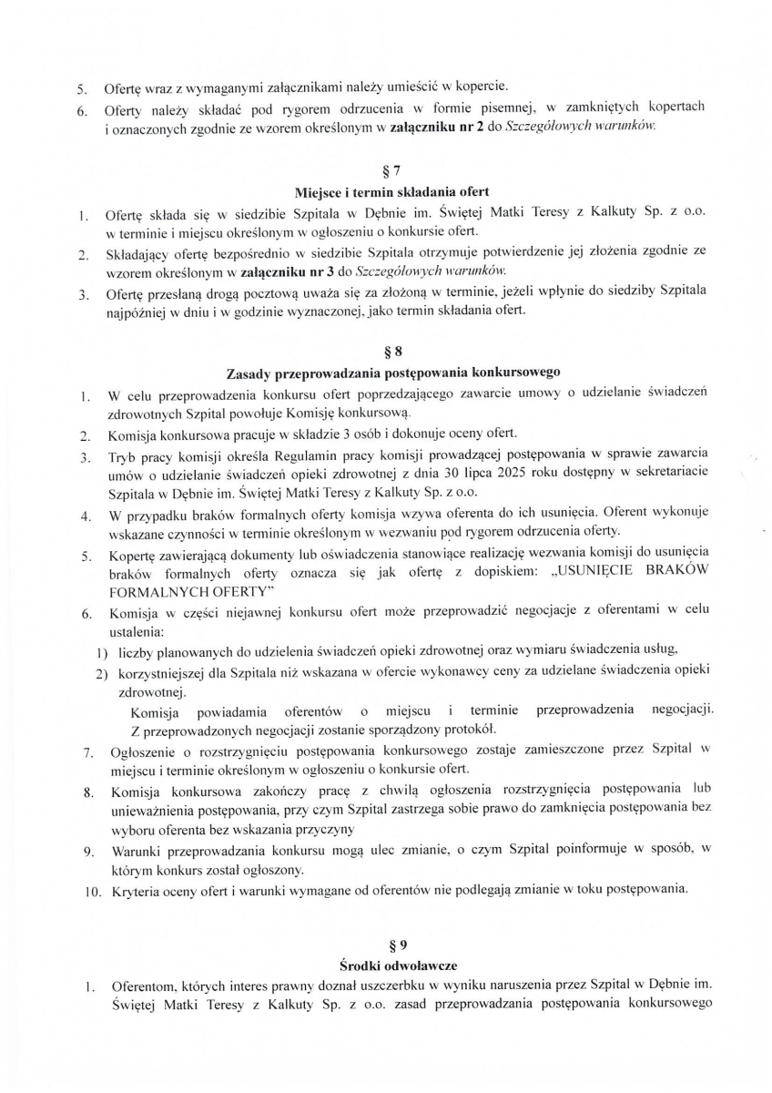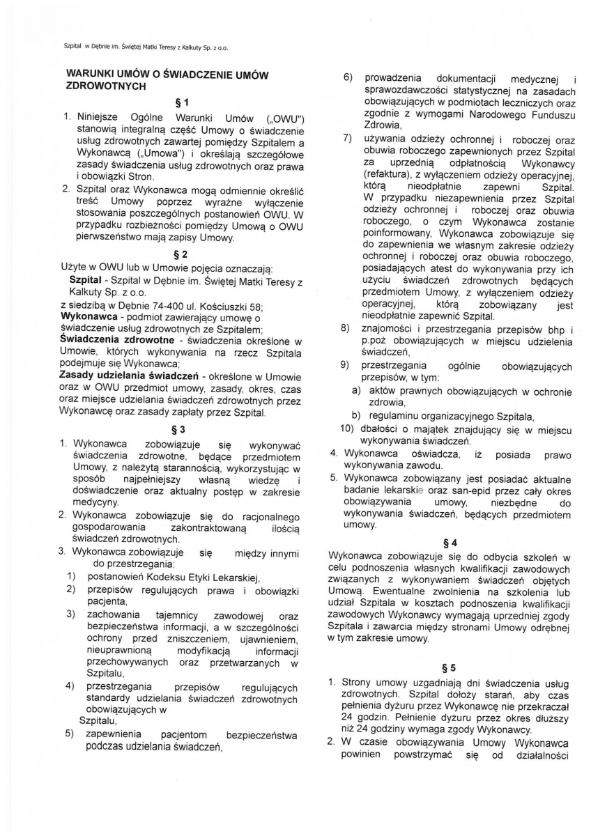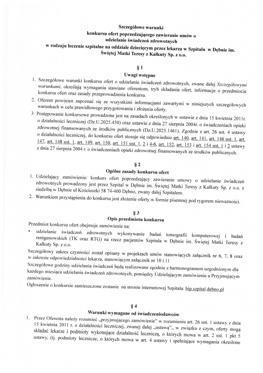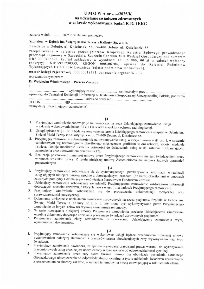 OGŁOSZENIE WYNIKÓW KONKURSU NA STANOWISKO PREZESA ZARZĄDU SPÓŁKI SZPITAL W DĘBNIE IM. ŚWIĘTEJ MATKI TERESY Z KALKUTY SP. Z O.O.