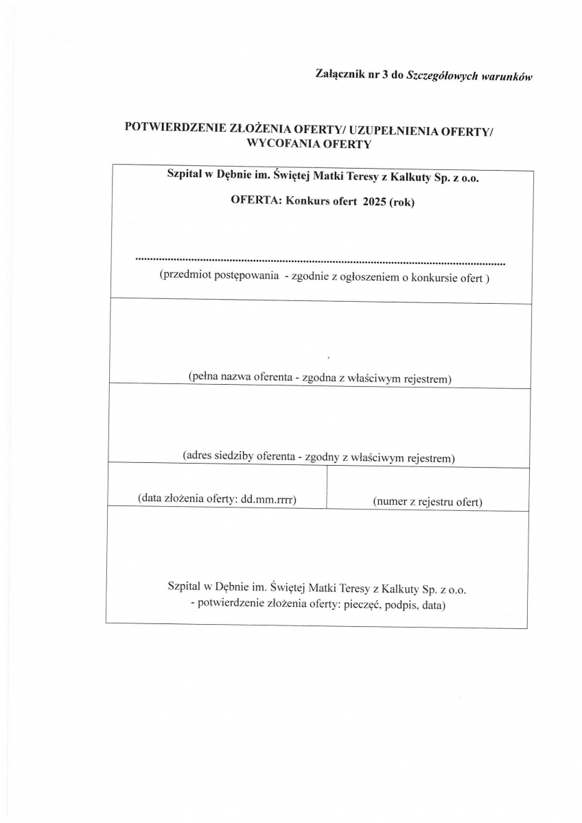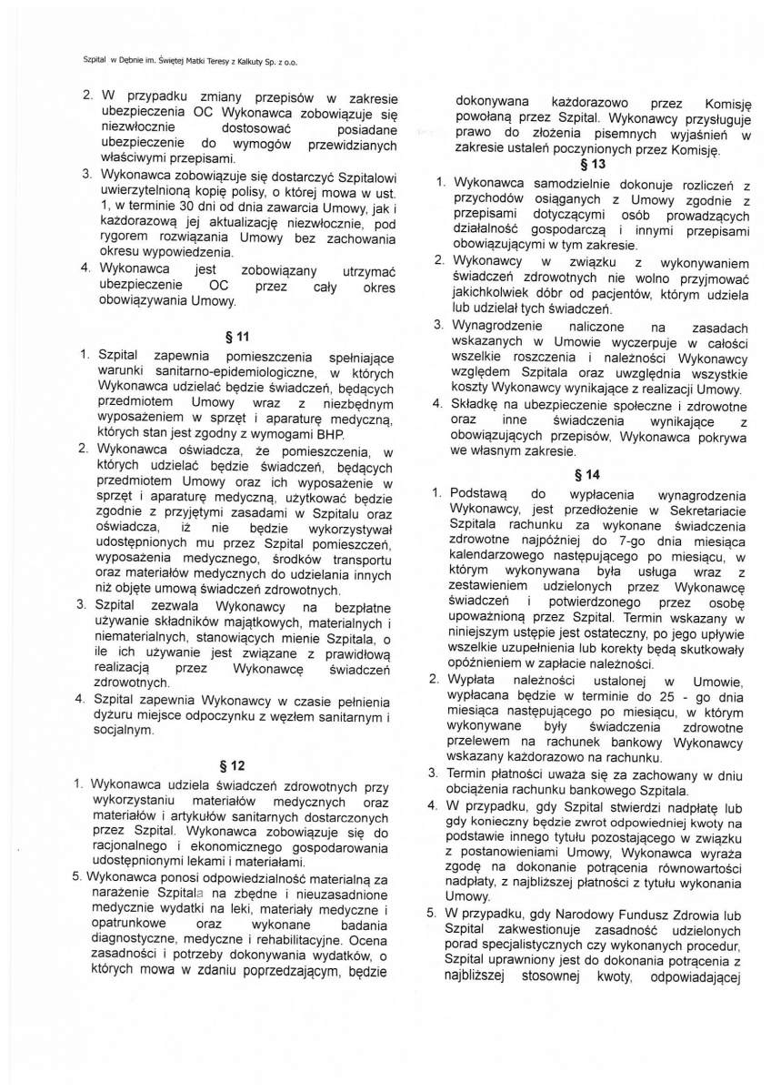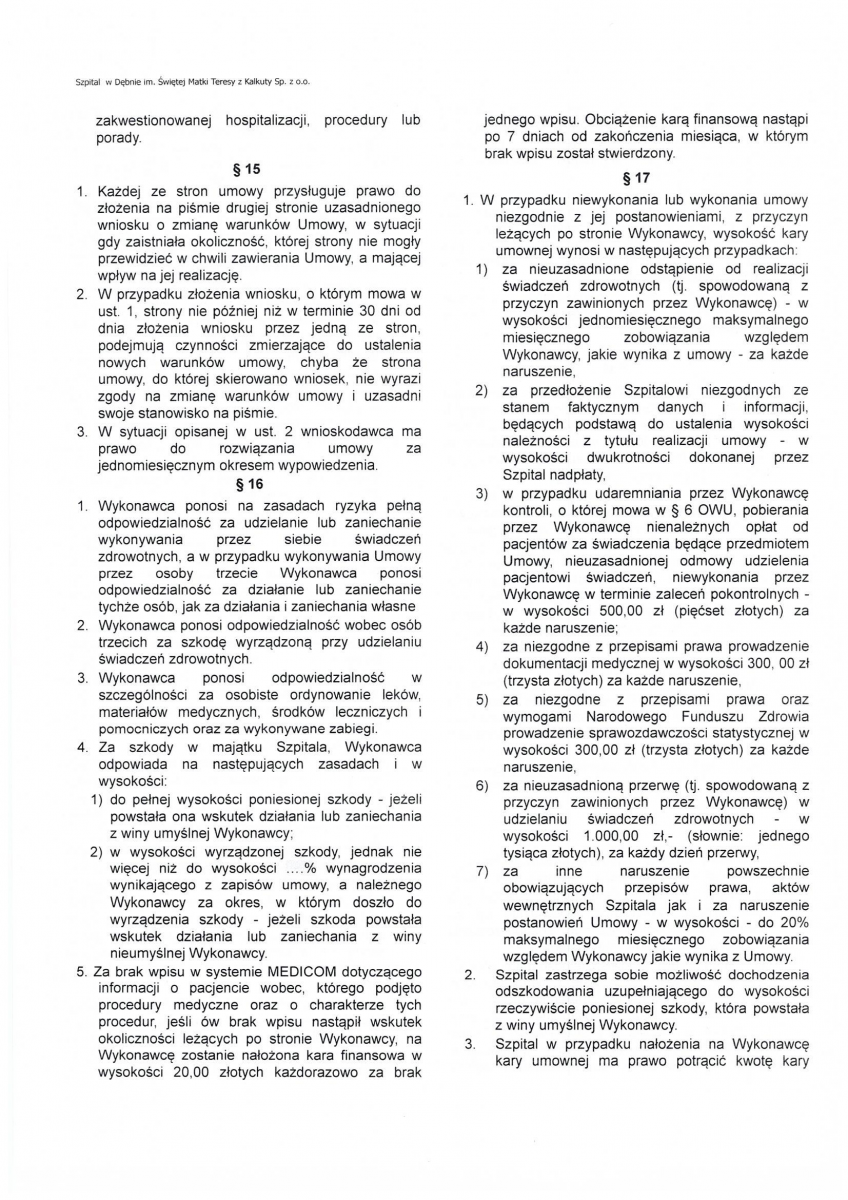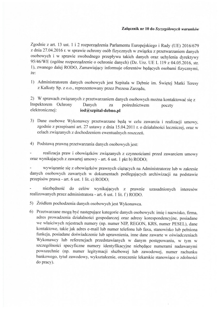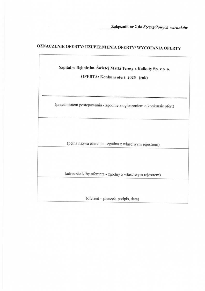 OGŁOSZENIE WYNIKÓW KONKURSU NA STANOWISKO PREZESA ZARZĄDU SPÓŁKI SZPITAL W DĘBNIE IM. ŚWIĘTEJ MATKI TERESY Z KALKUTY SP. Z O.O.