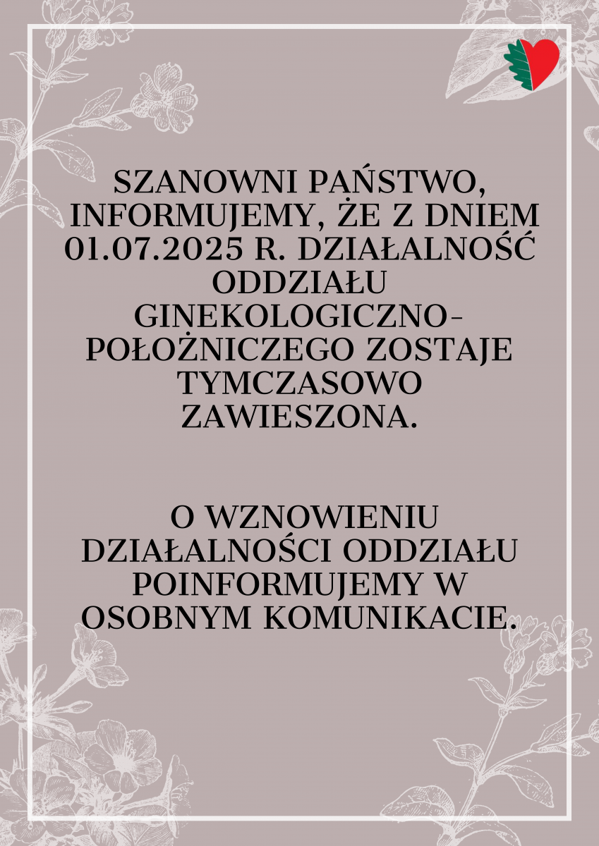 Oświadczenie dotyczące zawieszenia oddziału położniczo-ginekologicznego.