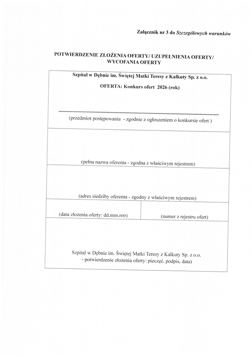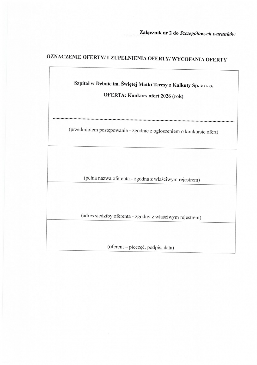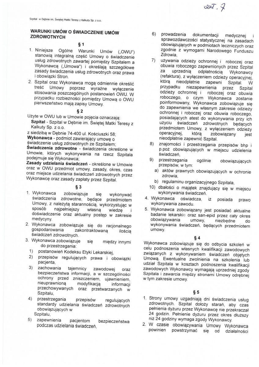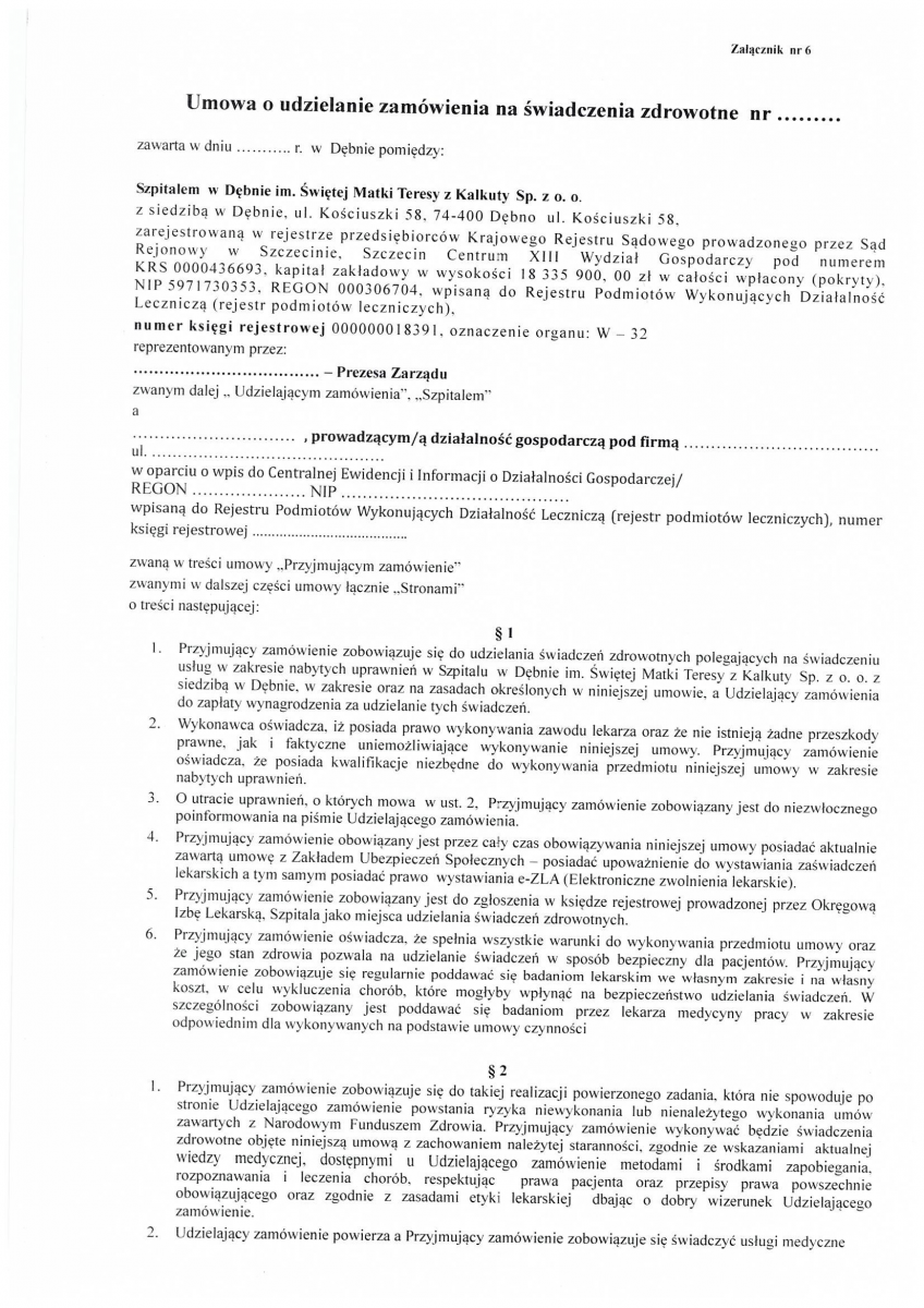 OGŁOSZENIE WYNIKÓW KONKURSU NA STANOWISKO PREZESA ZARZĄDU SPÓŁKI SZPITAL W DĘBNIE IM. ŚWIĘTEJ MATKI TERESY Z KALKUTY SP. Z O.O.
