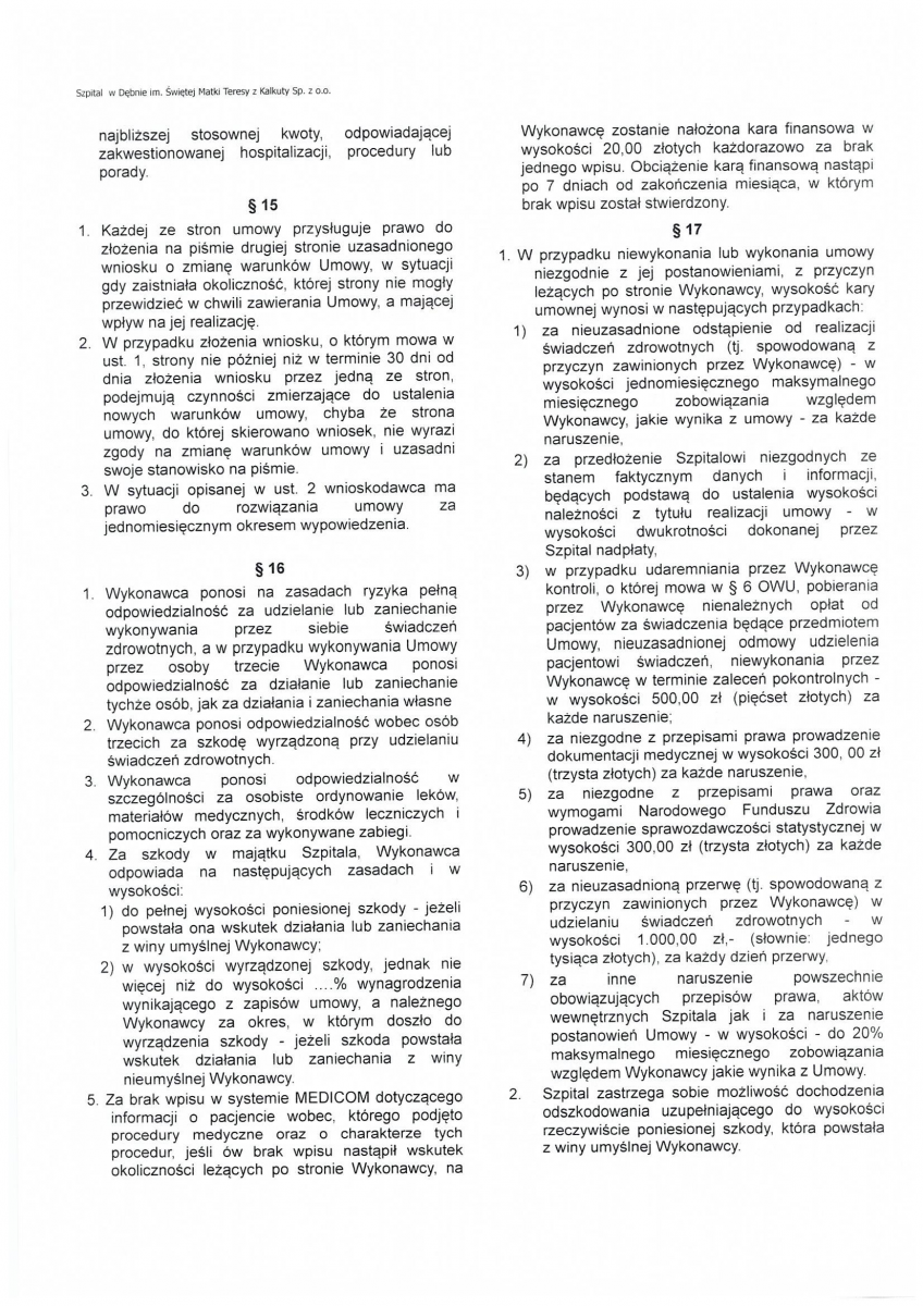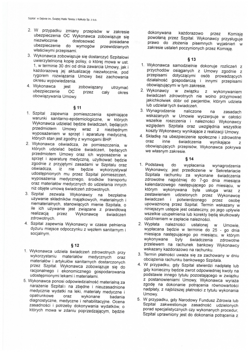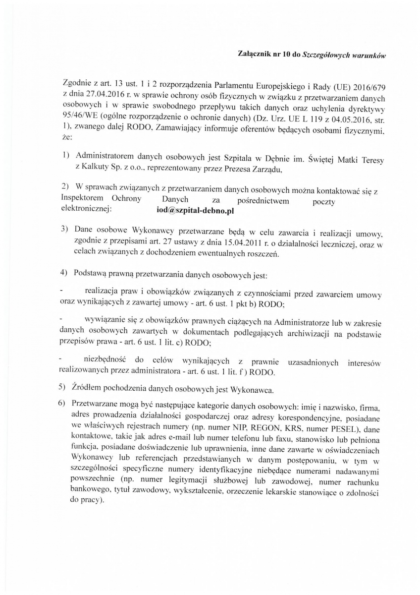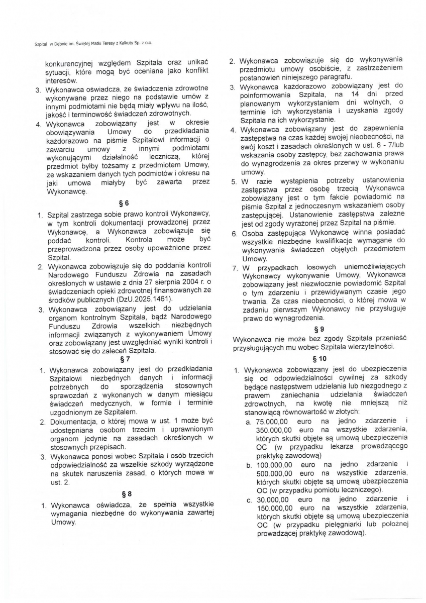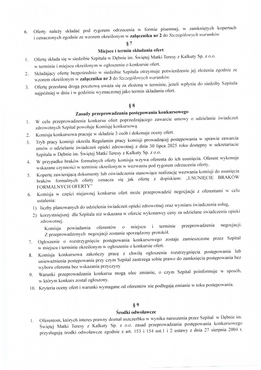 OGŁOSZENIE WYNIKÓW KONKURSU NA STANOWISKO PREZESA ZARZĄDU SPÓŁKI SZPITAL W DĘBNIE IM. ŚWIĘTEJ MATKI TERESY Z KALKUTY SP. Z O.O.