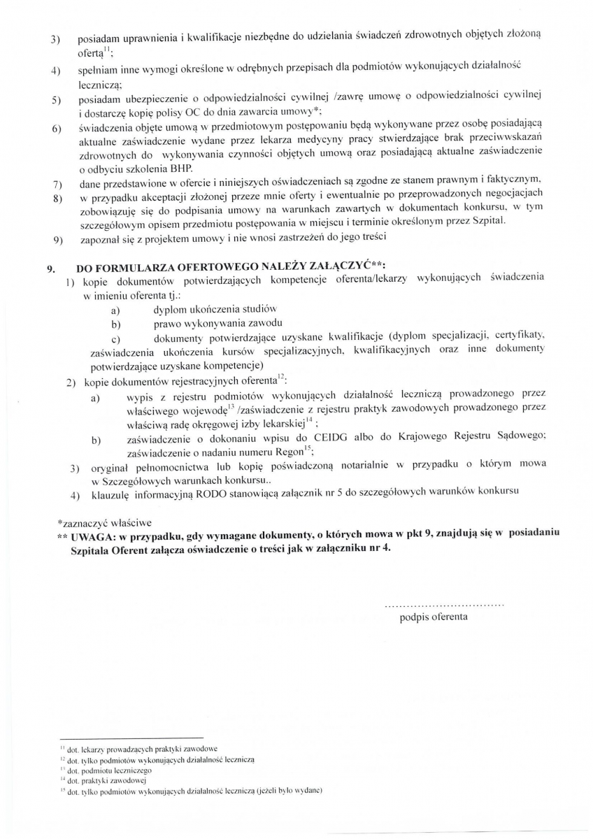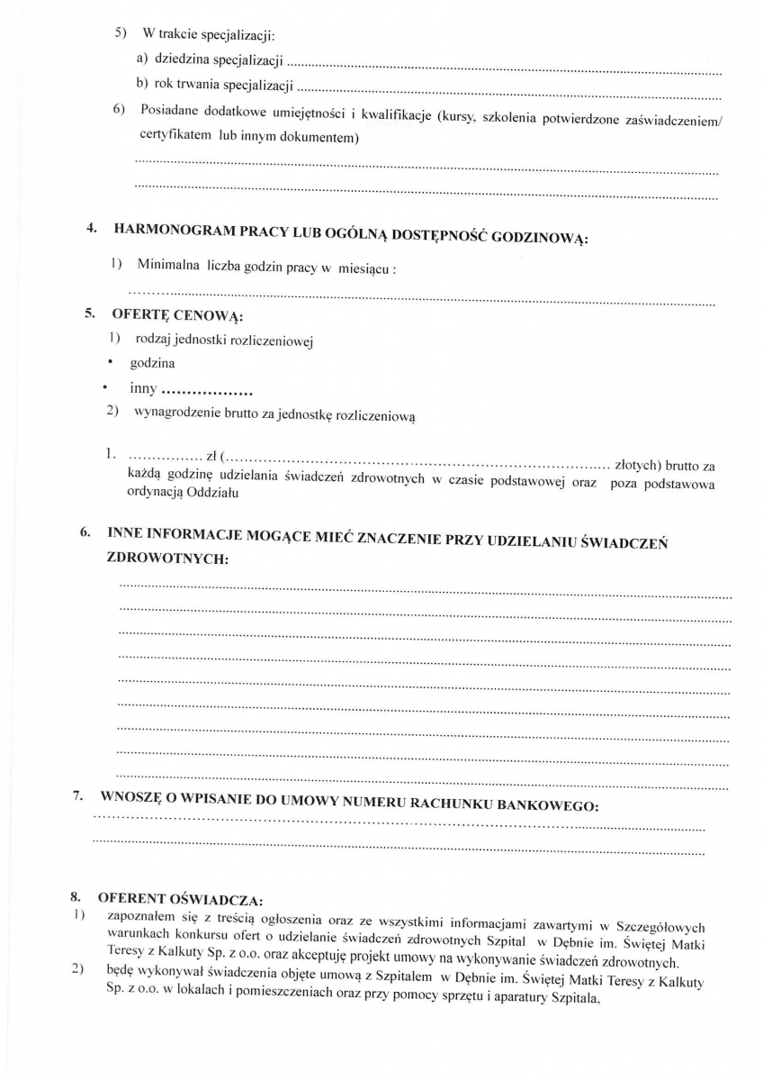Konkurs ofert na udzielanie świadczeń zdrowotnych - wykonywanie badań tomografii komputerowej i badań rentgenowskich (TK oraz RTG) oraz badań USG w szpitalu w Dębnie - z zakresu świadczeń lekarskich, z zakresu świadczeń technika.