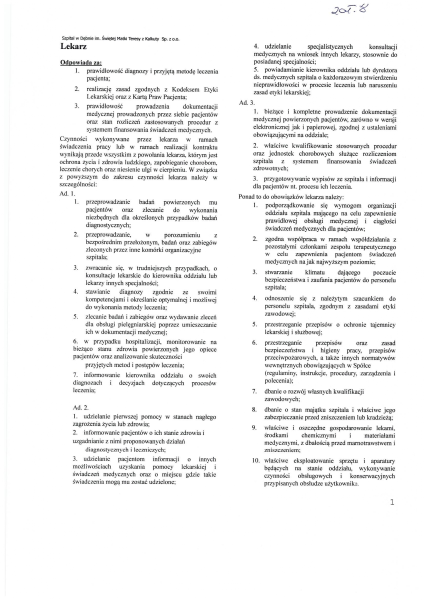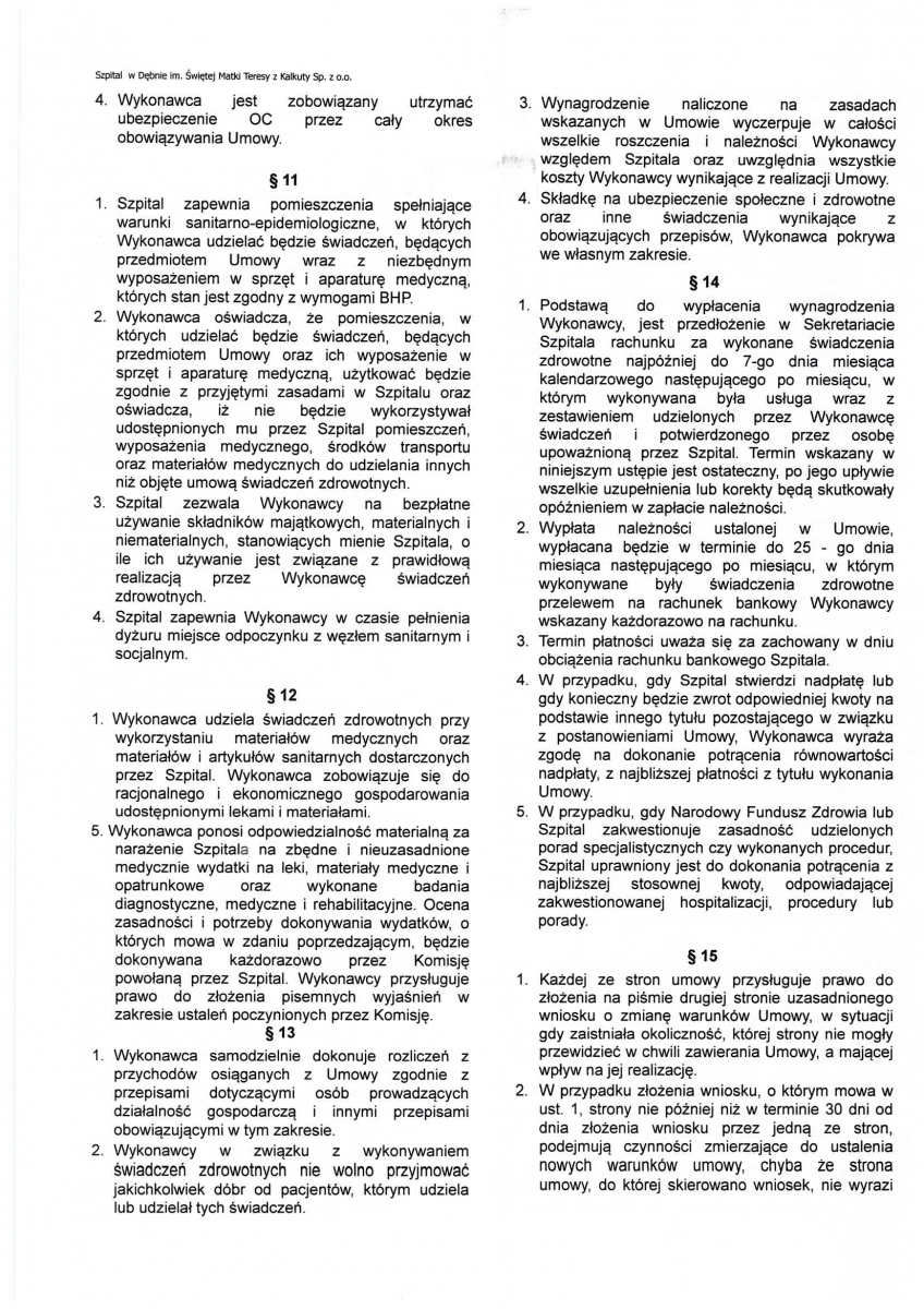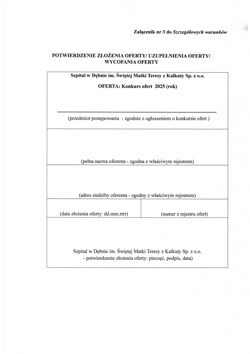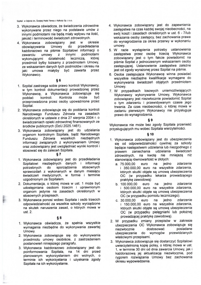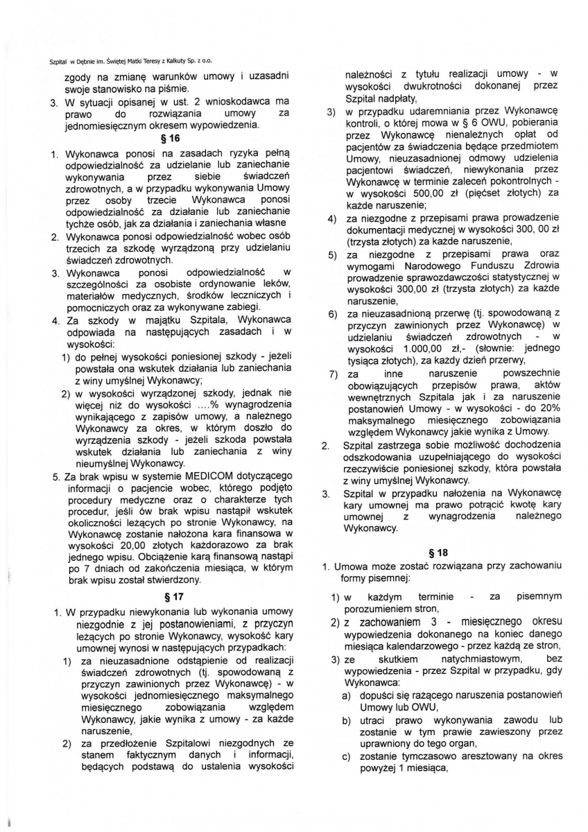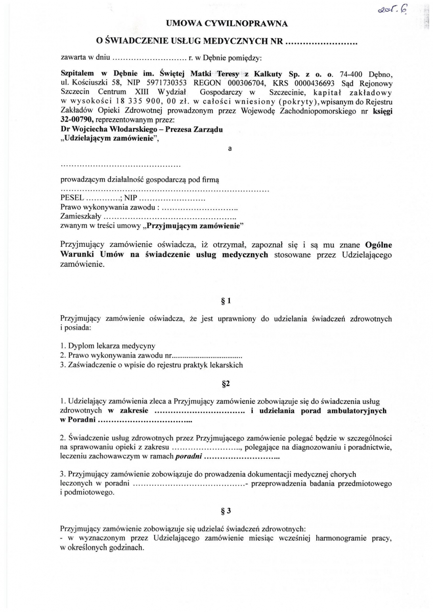 OGŁOSZENIE WYNIKÓW KONKURSU NA STANOWISKO PREZESA ZARZĄDU SPÓŁKI SZPITAL W DĘBNIE IM. ŚWIĘTEJ MATKI TERESY Z KALKUTY SP. Z O.O.