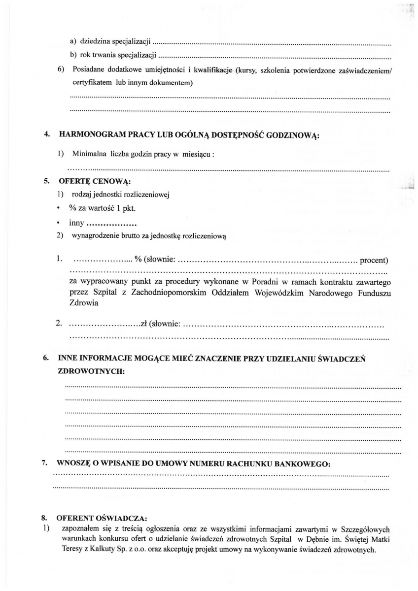 Konkurs ofert na udzielanie świadczeń zdrowotnych - wykonywanie badań tomografii komputerowej i badań rentgenowskich (TK oraz RTG) oraz badań USG w szpitalu w Dębnie - z zakresu świadczeń lekarskich, z zakresu świadczeń technika.