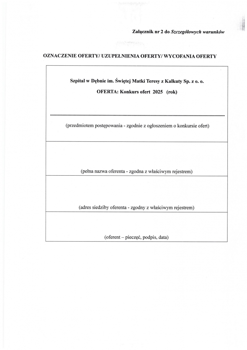Ogłoszenie o konkursie ofert - oddziały