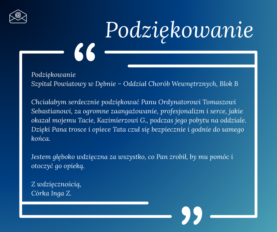 Podziękowanie dla oddziału wewnętrznego.