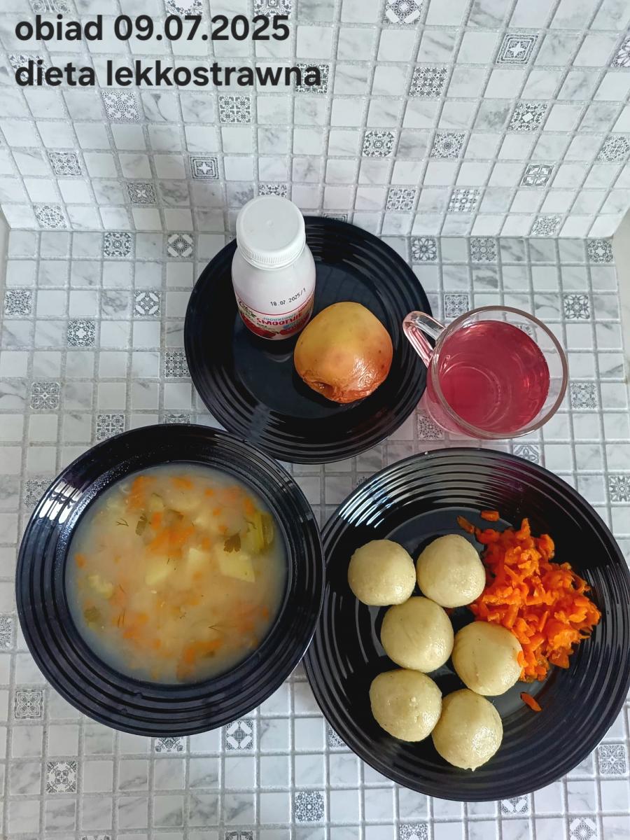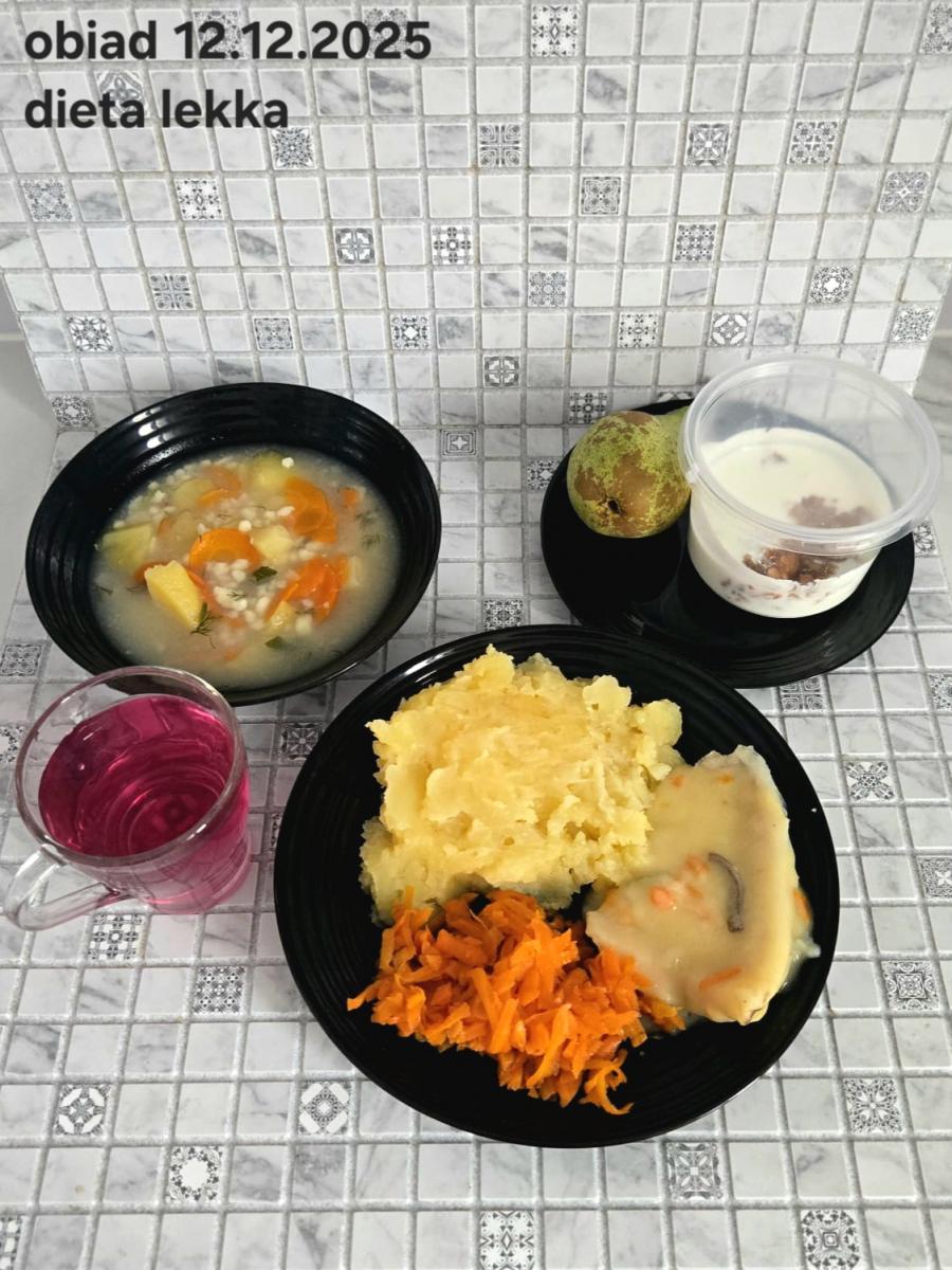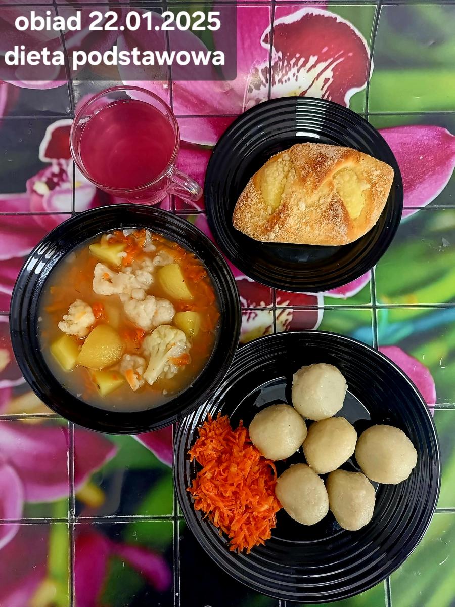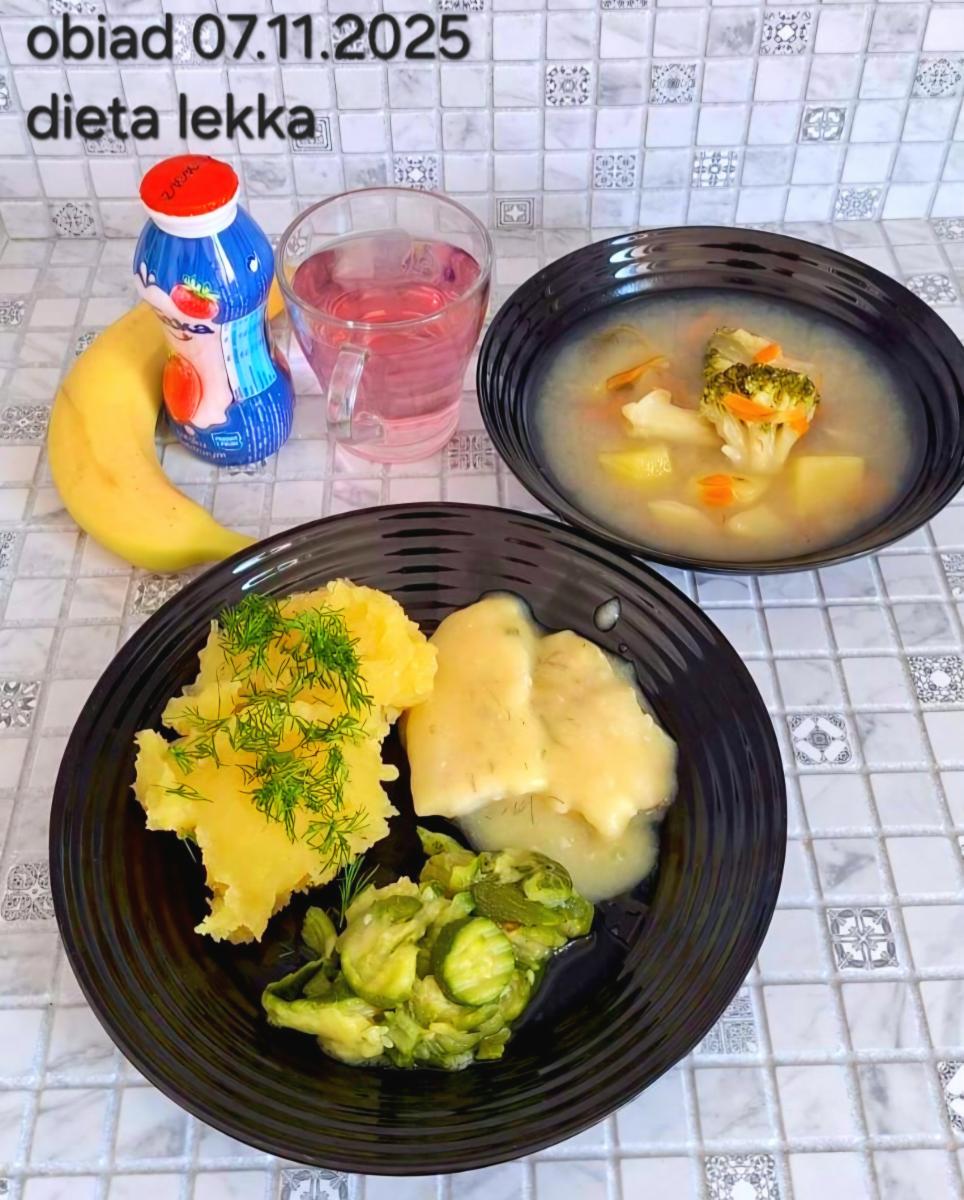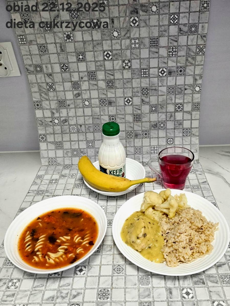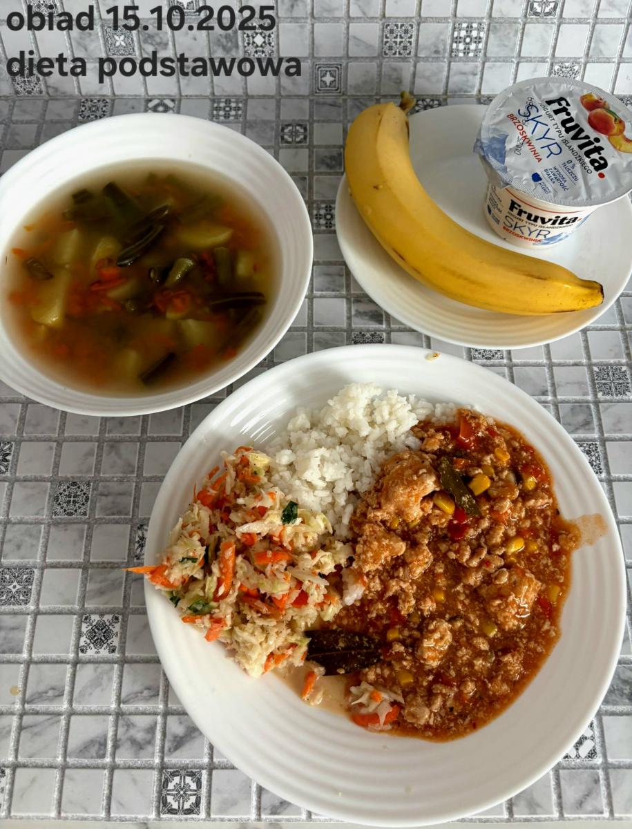 B,ZOL (cały), DZ: Zamiast kaszy- KOPYTKA(ziemniaki, skrobia ziemniaczana, mąka pszenna(1), jaja(3)) (250g), schab podany w formie gulaszu B: barszcz bez śmietany, sos na napoju sojowym (6) (zamiast śmietanki) L, L (W,T) zupa bez dodatku śmietany zamiast kaszy –KOPYTKA(1,3) (250g) Zamiast schabu indyk w wersji lekkostrawnej (filet z indyka- 100g, olej rzepakowy- 10g, papryka- 20g, marchew- pół średniej (22g), koncentrat pomidorowy- łyżeczka (12g), bulion warzywny(9)- 50ml ) L, L(W,T), Z, Z(PD): zamiast surówki brokuły (145g) z dodatkiem oleju rzepakowego (5g) C: Kompot bez dodatku cukru, Barszcz z dodatkiem mąki pełnoziarnistej (1) W: Zamiast surówki brokuły (145g) z dodatkiem oleju rzepakowego (5g) |