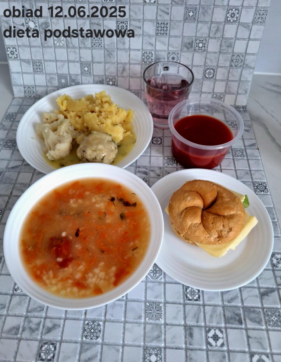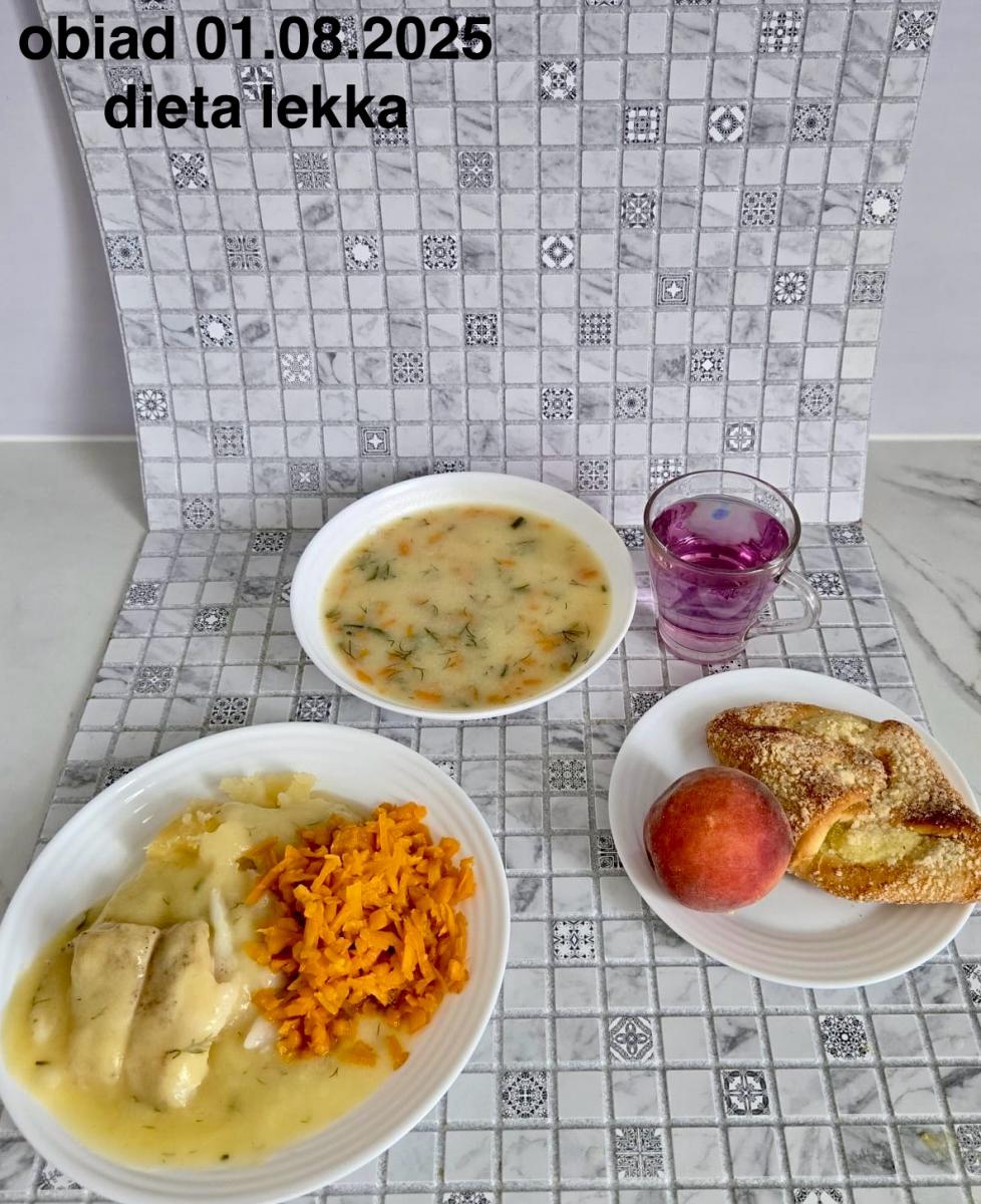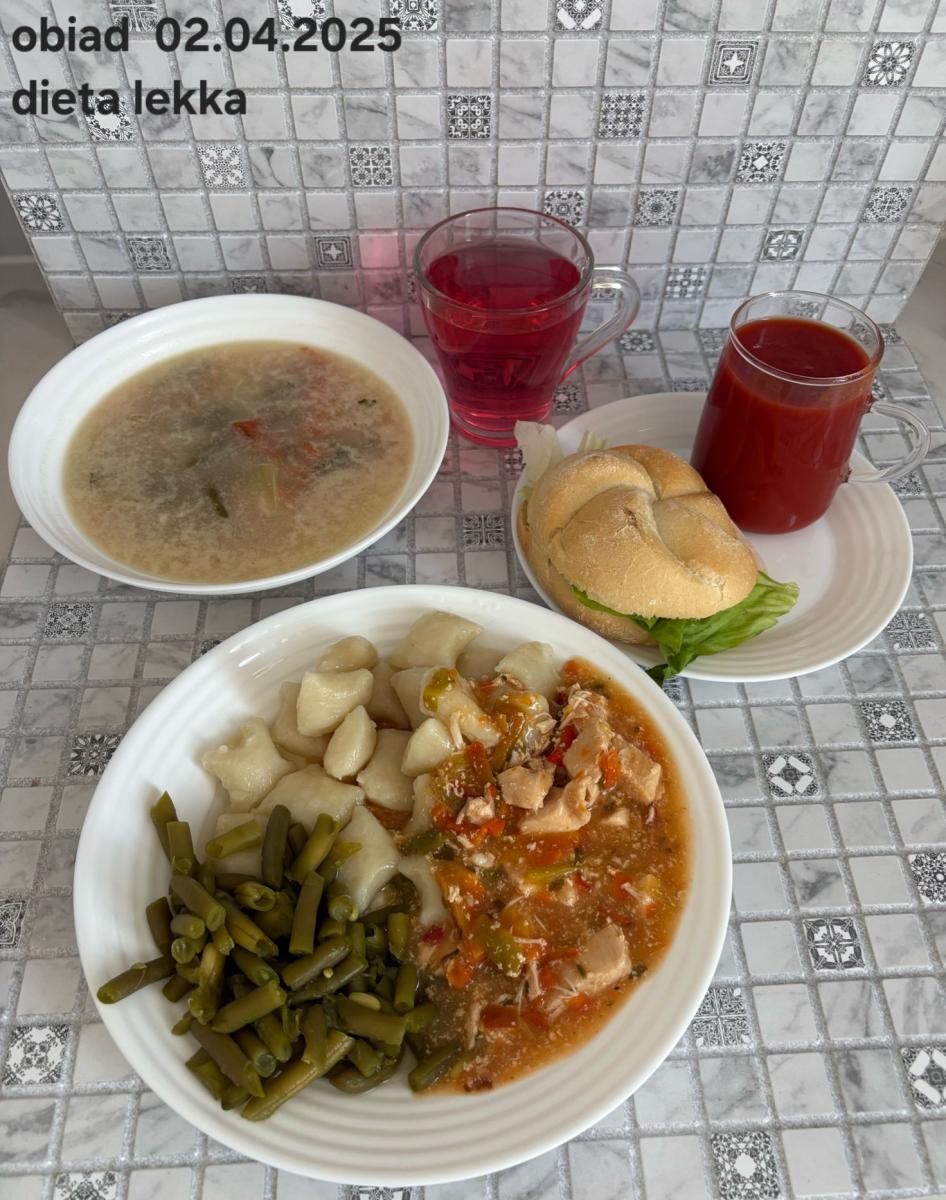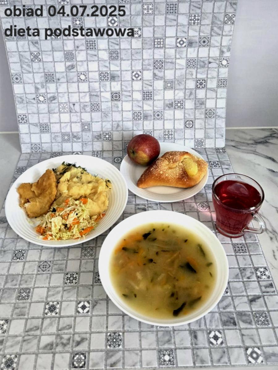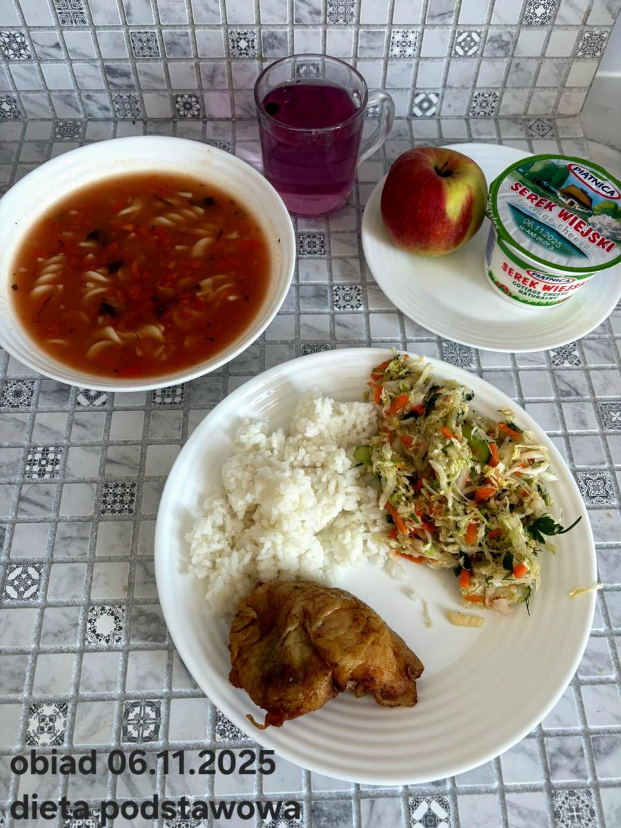 B,ZOL (cały), DZ: Zamiast kaszy- KOPYTKA(ziemniaki, skrobia ziemniaczana, mąka pszenna(1), jaja(3)) (250g), schab podany w formie gulaszu B: barszcz bez śmietany, sos na napoju sojowym (6) (zamiast śmietanki) L, L (W,T) zupa bez dodatku śmietany zamiast kaszy –KOPYTKA(1,3) (250g) Zamiast schabu indyk w wersji lekkostrawnej (filet z indyka- 100g, olej rzepakowy- 10g, papryka- 20g, marchew- pół średniej (22g), koncentrat pomidorowy- łyżeczka (12g), bulion warzywny(9)- 50ml ) L, L(W,T), Z, Z(PD): zamiast surówki brokuły (145g) z dodatkiem oleju rzepakowego (5g) C: Kompot bez dodatku cukru, Barszcz z dodatkiem mąki pełnoziarnistej (1) W: Zamiast surówki brokuły (145g) z dodatkiem oleju rzepakowego (5g) |