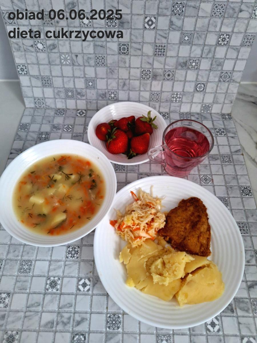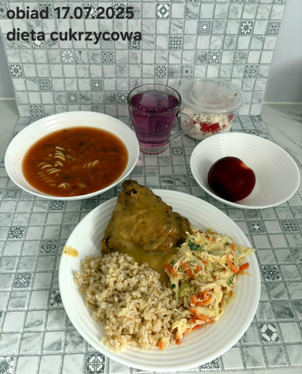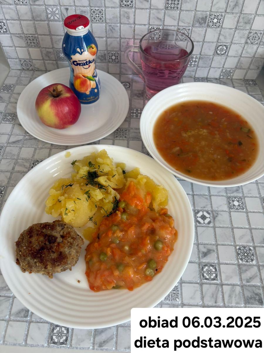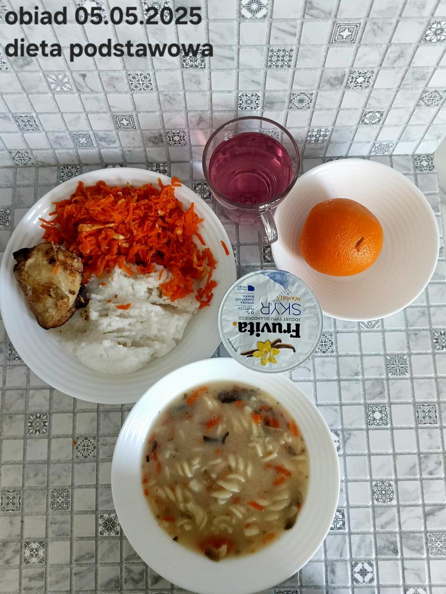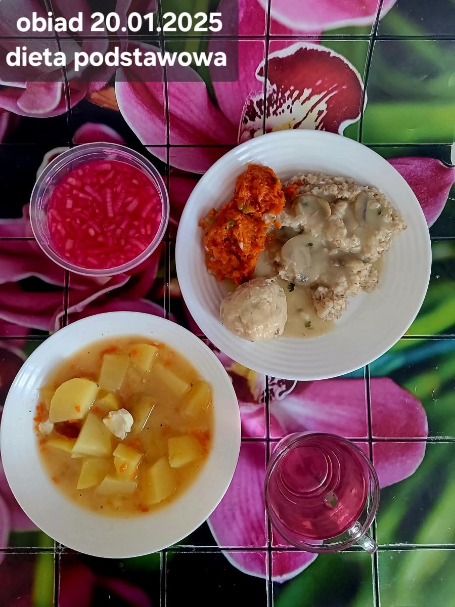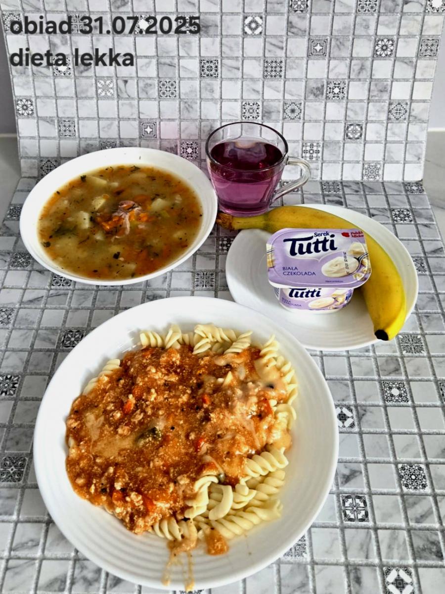 B,ZOL (cały), DZ: Zamiast kaszy- KOPYTKA(ziemniaki, skrobia ziemniaczana, mąka pszenna(1), jaja(3)) (250g), schab podany w formie gulaszu B: barszcz bez śmietany, sos na napoju sojowym (6) (zamiast śmietanki) L, L (W,T) zupa bez dodatku śmietany zamiast kaszy –KOPYTKA(1,3) (250g) Zamiast schabu indyk w wersji lekkostrawnej (filet z indyka- 100g, olej rzepakowy- 10g, papryka- 20g, marchew- pół średniej (22g), koncentrat pomidorowy- łyżeczka (12g), bulion warzywny(9)- 50ml ) L, L(W,T), Z, Z(PD): zamiast surówki brokuły (145g) z dodatkiem oleju rzepakowego (5g) C: Kompot bez dodatku cukru, Barszcz z dodatkiem mąki pełnoziarnistej (1) W: Zamiast surówki brokuły (145g) z dodatkiem oleju rzepakowego (5g) |