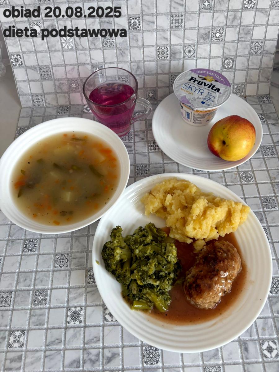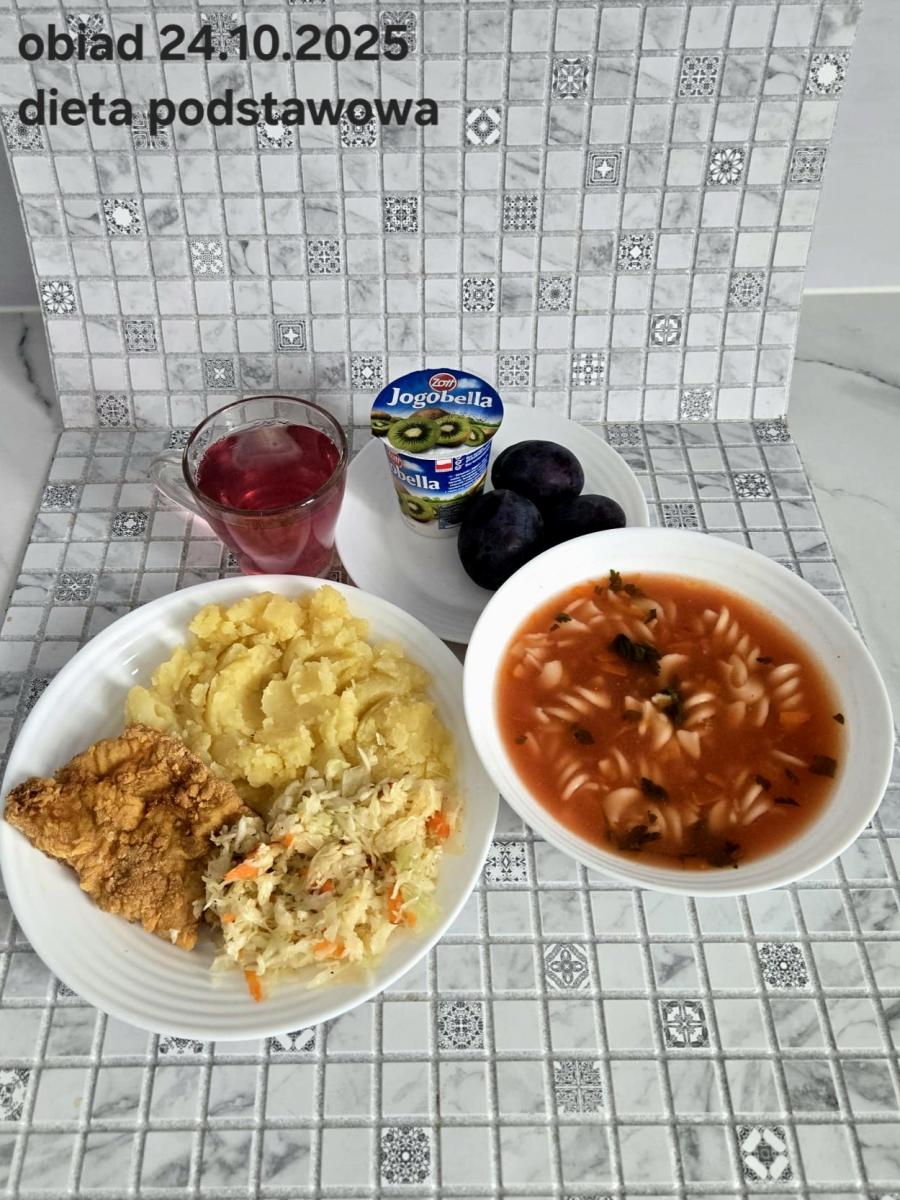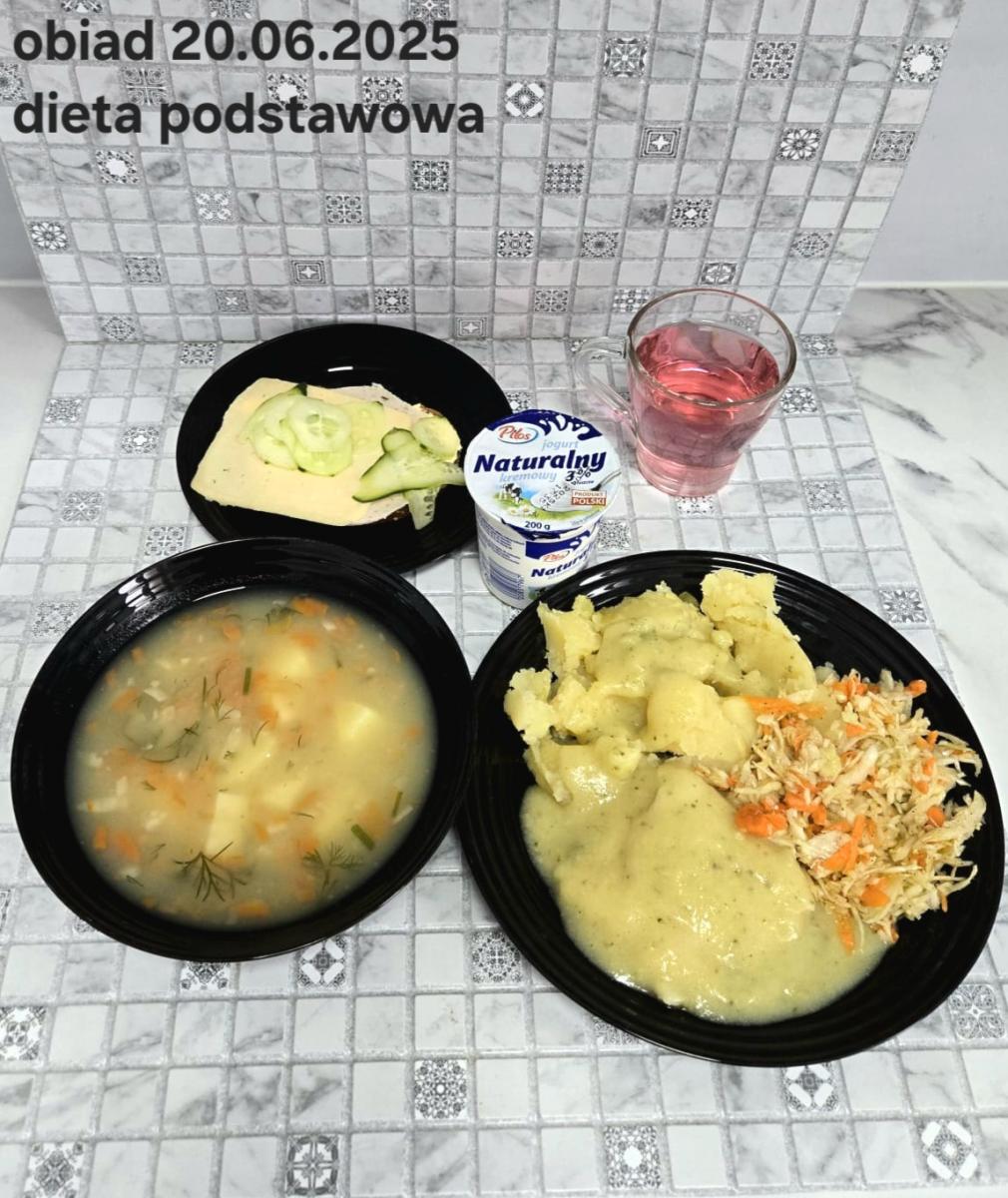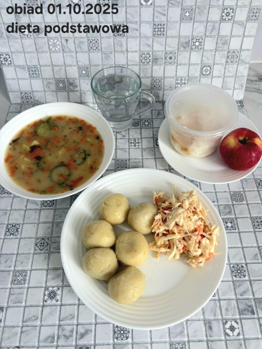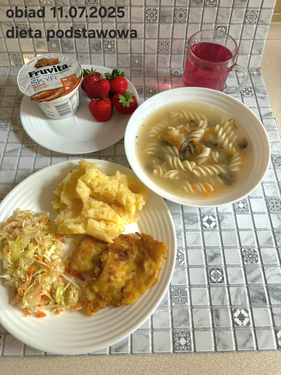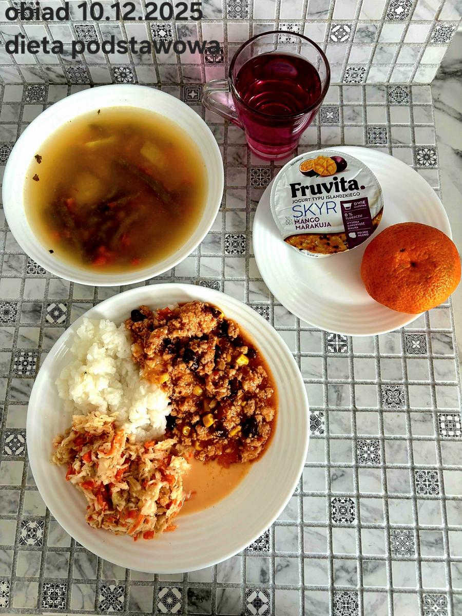 B,ZOL (cały), DZ: Zamiast kaszy- KOPYTKA(ziemniaki, skrobia ziemniaczana, mąka pszenna(1), jaja(3)) (250g), schab podany w formie gulaszu B: barszcz bez śmietany, sos na napoju sojowym (6) (zamiast śmietanki) L, L (W,T) zupa bez dodatku śmietany zamiast kaszy –KOPYTKA(1,3) (250g) Zamiast schabu indyk w wersji lekkostrawnej (filet z indyka- 100g, olej rzepakowy- 10g, papryka- 20g, marchew- pół średniej (22g), koncentrat pomidorowy- łyżeczka (12g), bulion warzywny(9)- 50ml ) L, L(W,T), Z, Z(PD): zamiast surówki brokuły (145g) z dodatkiem oleju rzepakowego (5g) C: Kompot bez dodatku cukru, Barszcz z dodatkiem mąki pełnoziarnistej (1) W: Zamiast surówki brokuły (145g) z dodatkiem oleju rzepakowego (5g) |
