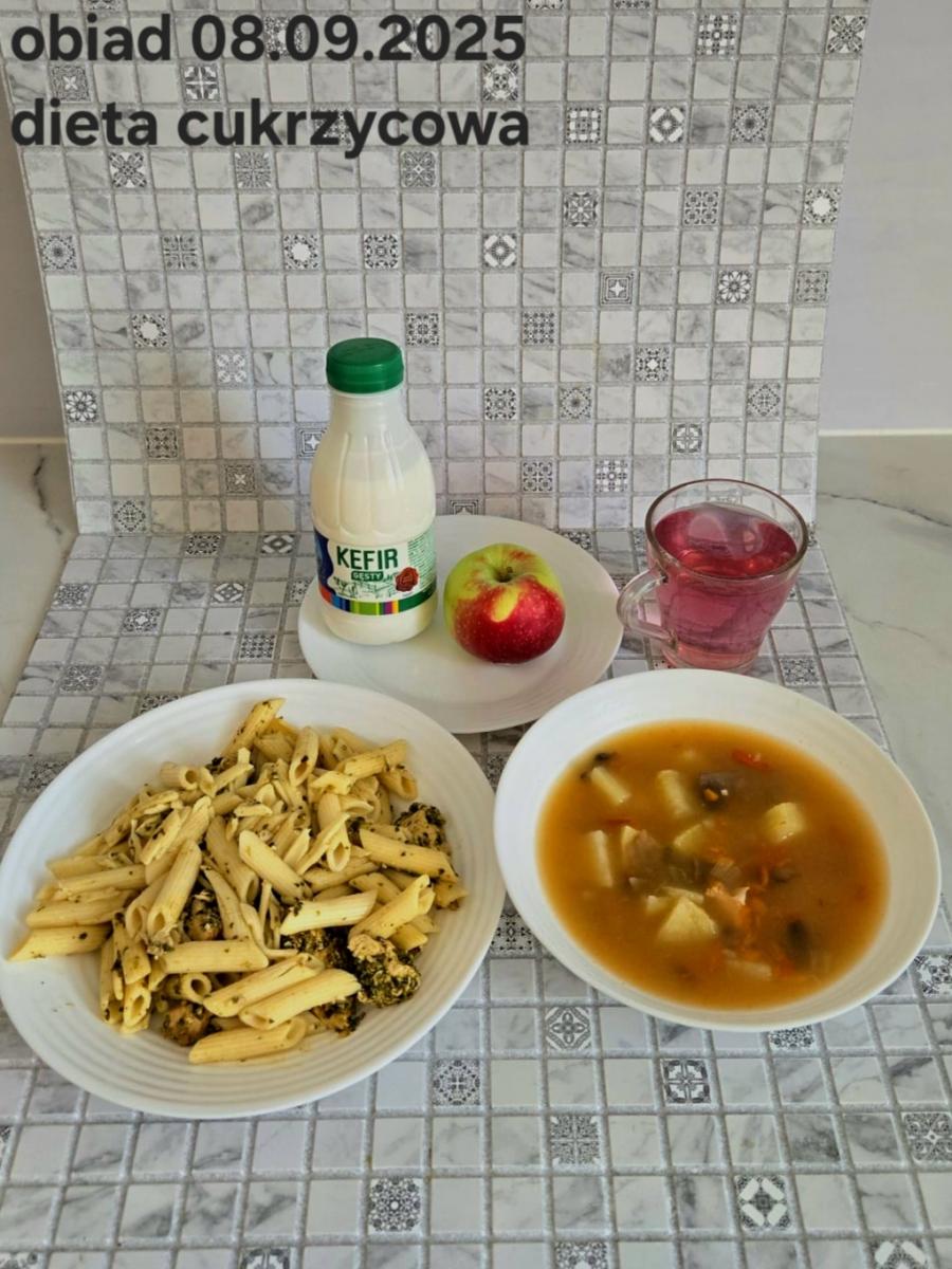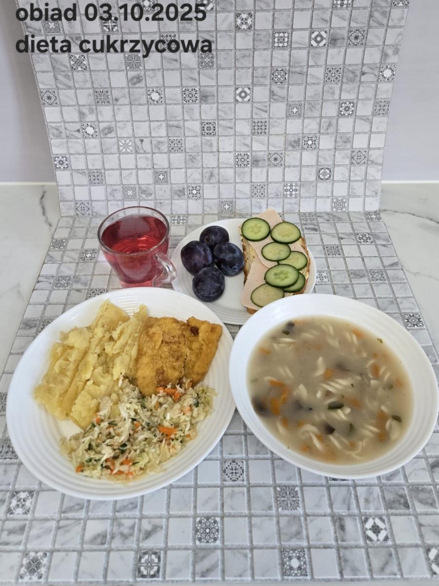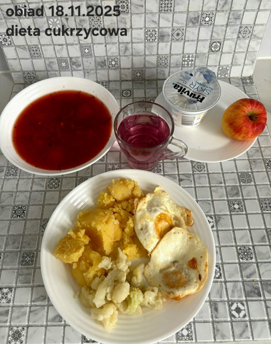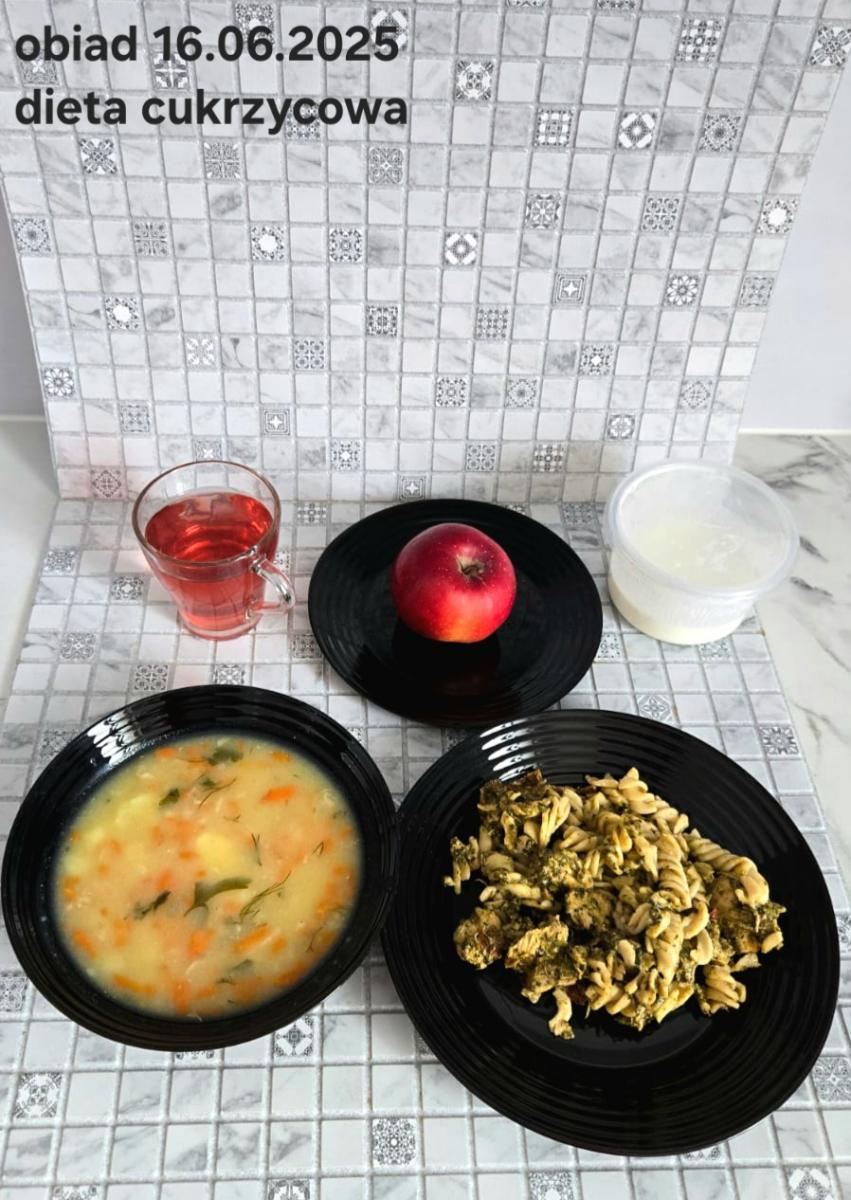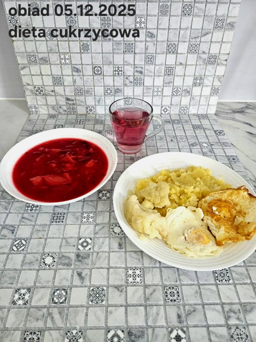 B,ZOL (cały), DZ: Zamiast kaszy- KOPYTKA(ziemniaki, skrobia ziemniaczana, mąka pszenna(1), jaja(3)) (250g), schab podany w formie gulaszu B: barszcz bez śmietany, sos na napoju sojowym (6) (zamiast śmietanki) L, L (W,T) zupa bez dodatku śmietany zamiast kaszy –KOPYTKA(1,3) (250g) Zamiast schabu indyk w wersji lekkostrawnej (filet z indyka- 100g, olej rzepakowy- 10g, papryka- 20g, marchew- pół średniej (22g), koncentrat pomidorowy- łyżeczka (12g), bulion warzywny(9)- 50ml ) L, L(W,T), Z, Z(PD): zamiast surówki brokuły (145g) z dodatkiem oleju rzepakowego (5g) C: Kompot bez dodatku cukru, Barszcz z dodatkiem mąki pełnoziarnistej (1) W: Zamiast surówki brokuły (145g) z dodatkiem oleju rzepakowego (5g) |