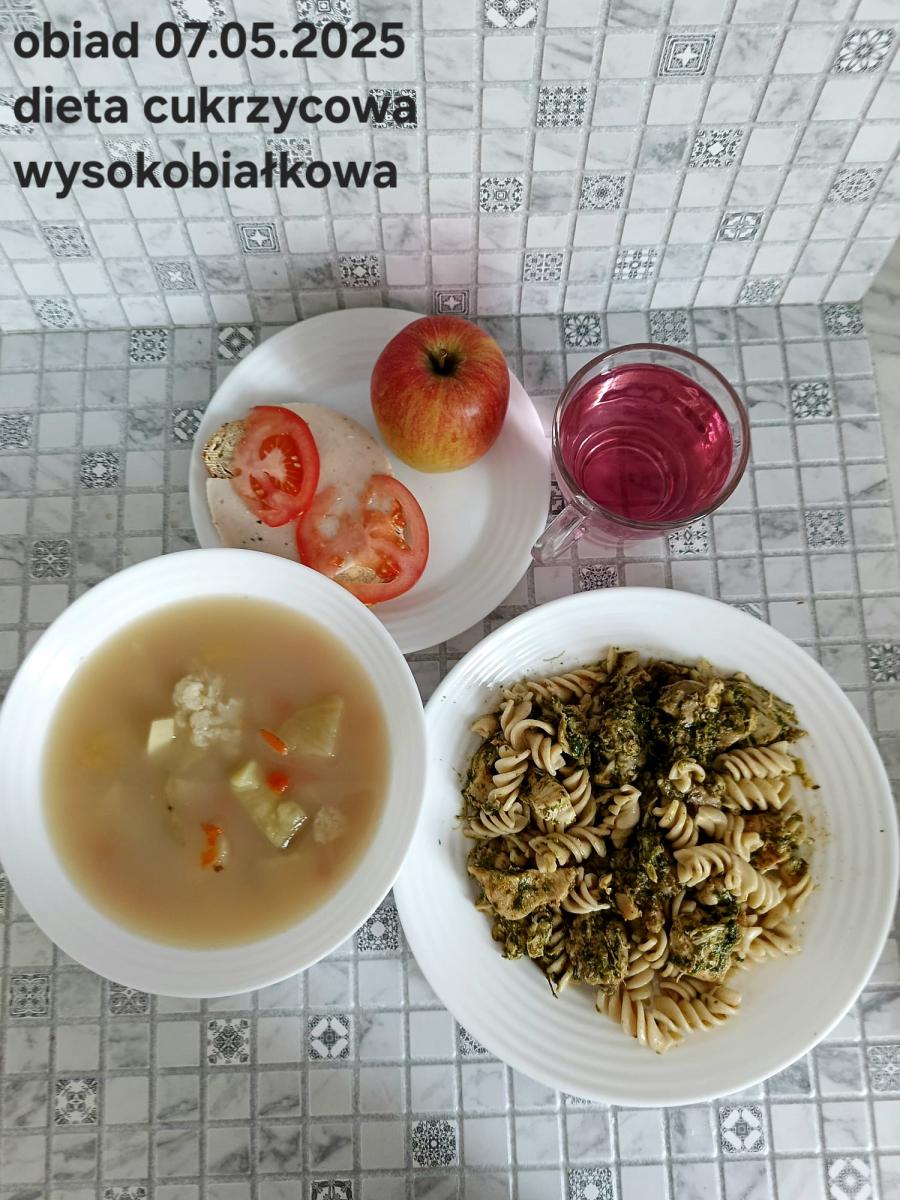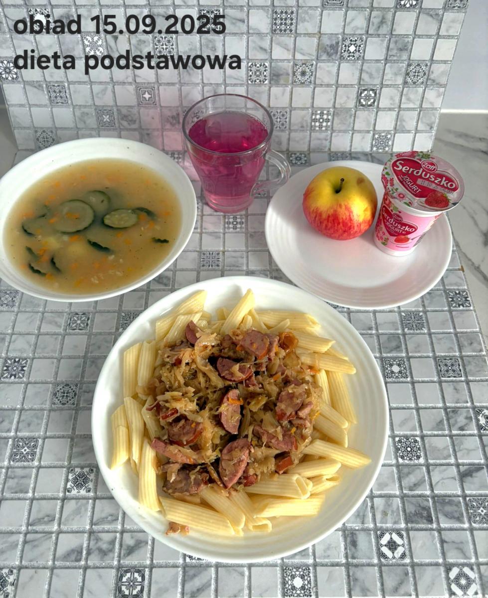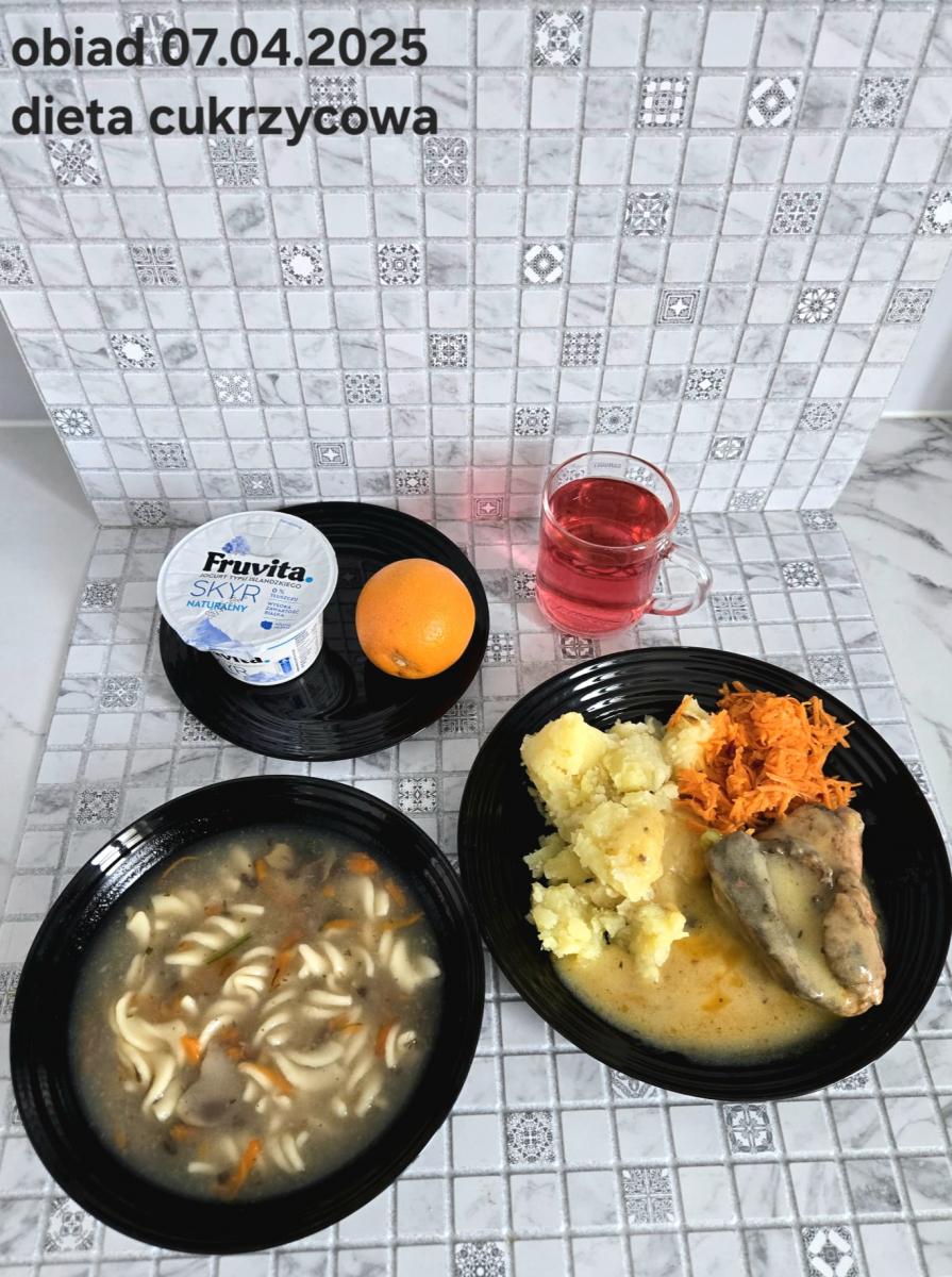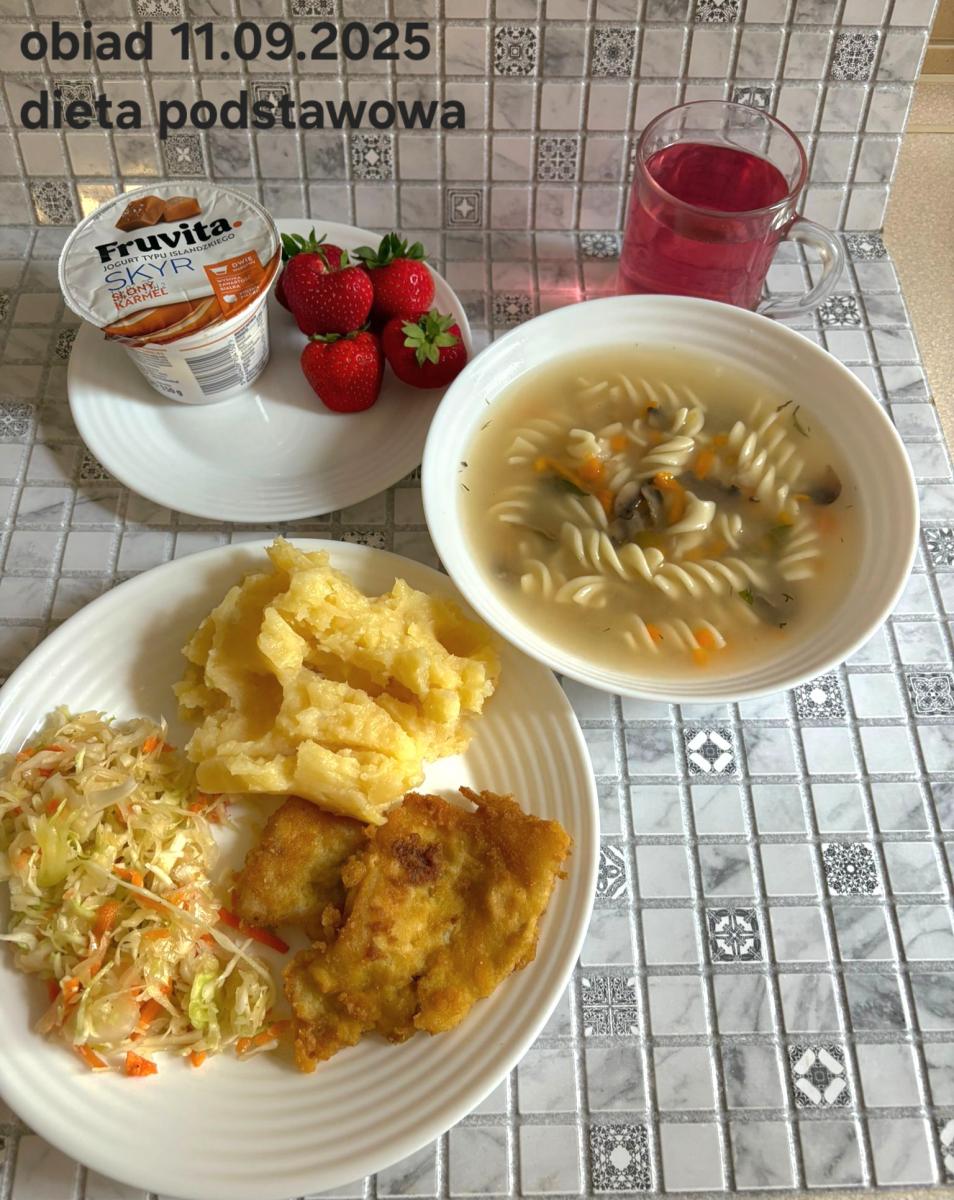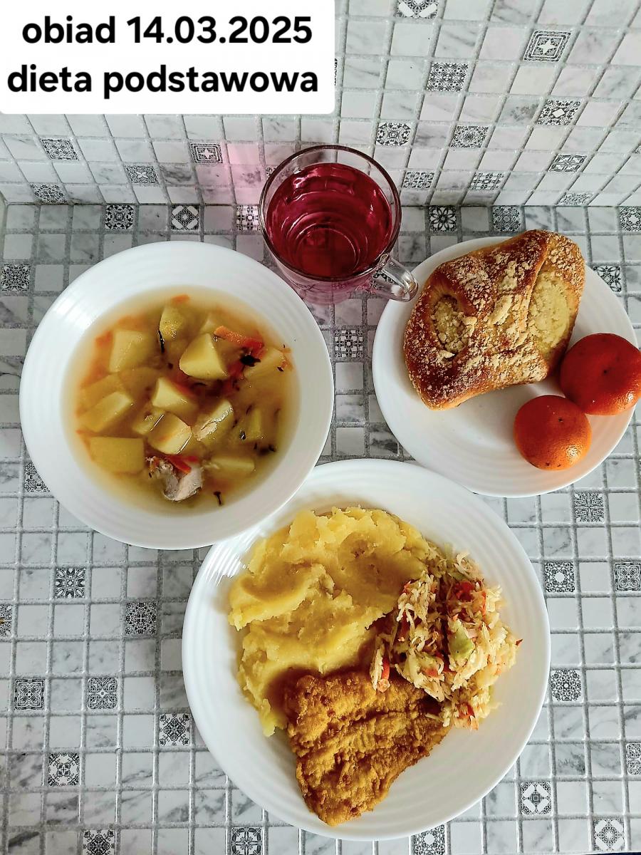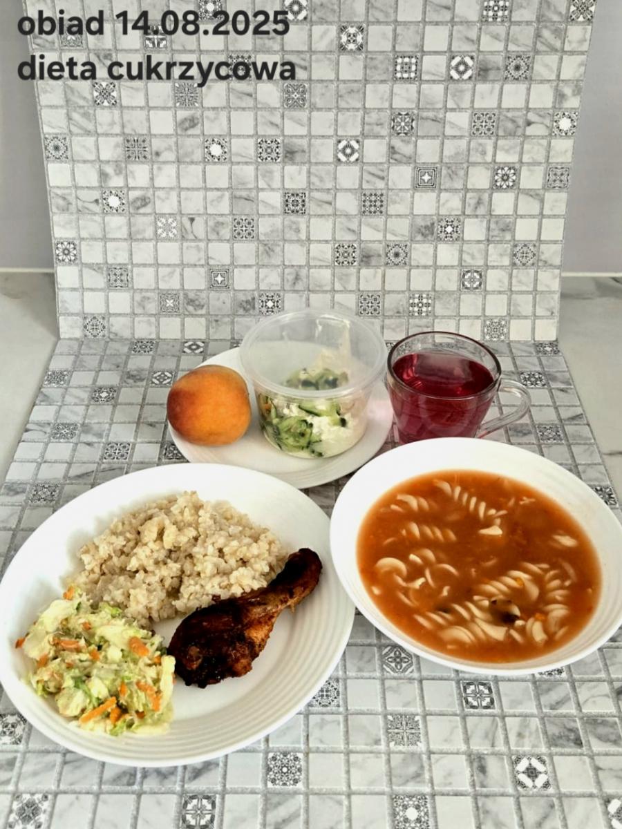 B,ZOL (cały), DZ: Zamiast kaszy- KOPYTKA(ziemniaki, skrobia ziemniaczana, mąka pszenna(1), jaja(3)) (250g), schab podany w formie gulaszu B: barszcz bez śmietany, sos na napoju sojowym (6) (zamiast śmietanki) L, L (W,T) zupa bez dodatku śmietany zamiast kaszy –KOPYTKA(1,3) (250g) Zamiast schabu indyk w wersji lekkostrawnej (filet z indyka- 100g, olej rzepakowy- 10g, papryka- 20g, marchew- pół średniej (22g), koncentrat pomidorowy- łyżeczka (12g), bulion warzywny(9)- 50ml ) L, L(W,T), Z, Z(PD): zamiast surówki brokuły (145g) z dodatkiem oleju rzepakowego (5g) C: Kompot bez dodatku cukru, Barszcz z dodatkiem mąki pełnoziarnistej (1) W: Zamiast surówki brokuły (145g) z dodatkiem oleju rzepakowego (5g) |