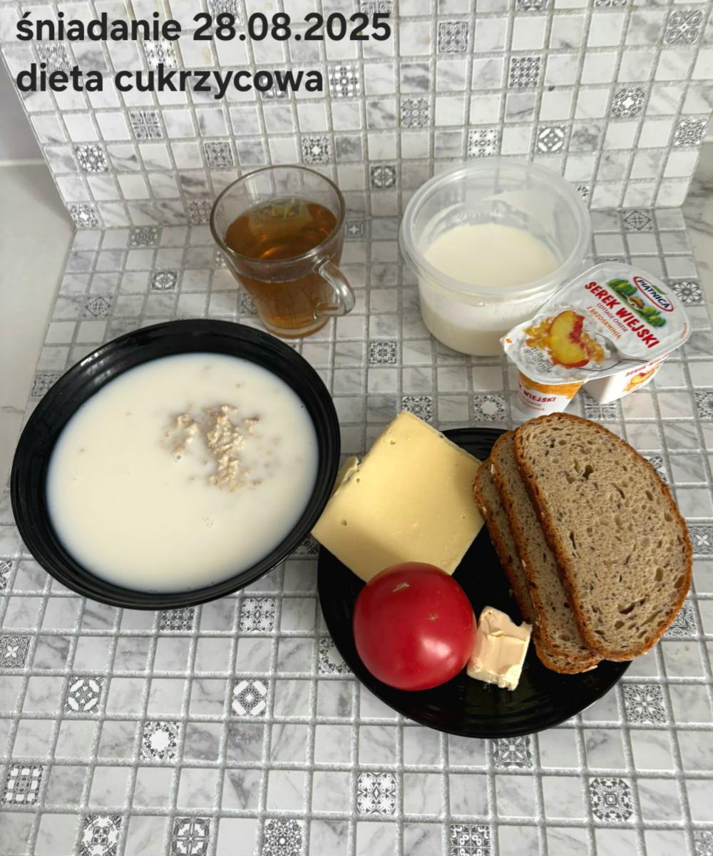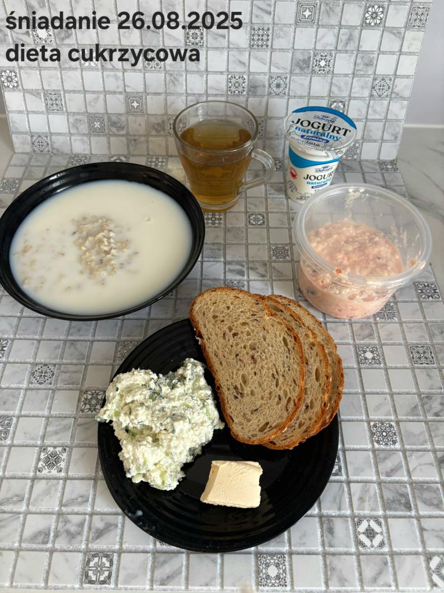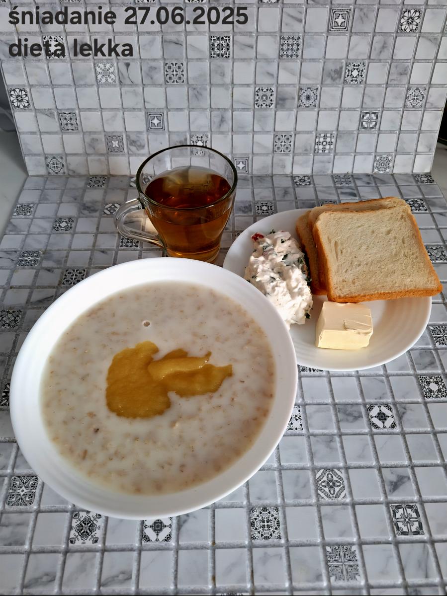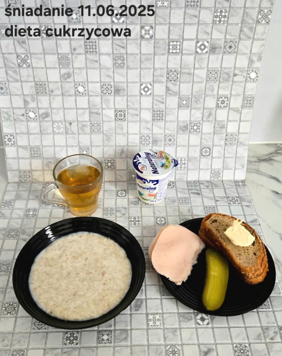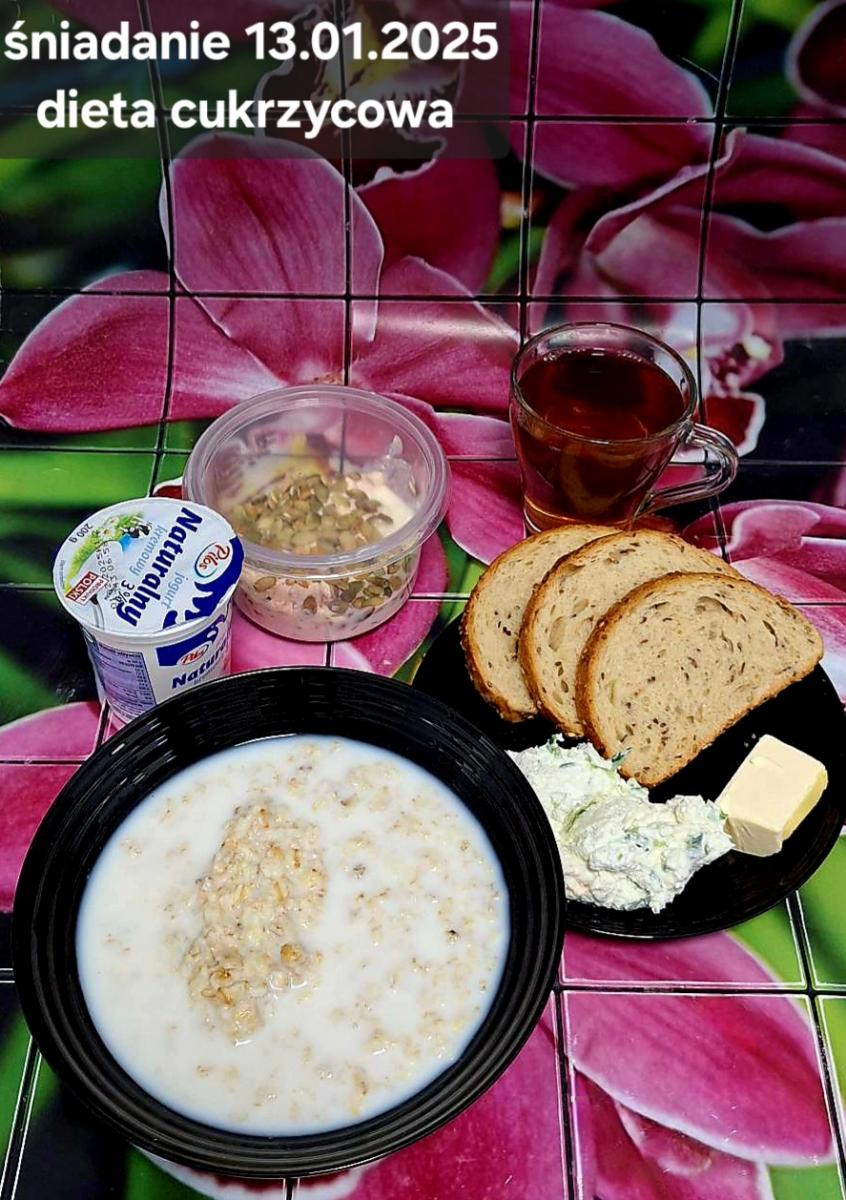 C: Zamiast płatków jęczmiennych- PŁATKI OWSIANE (1) (50g) CHLEB ŻYTNI RAZOWY(1)- 150g Herbata bez dodatku cukru