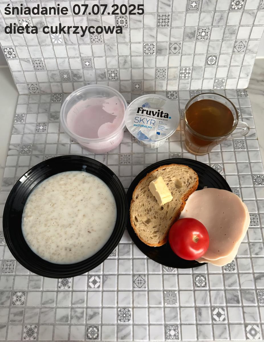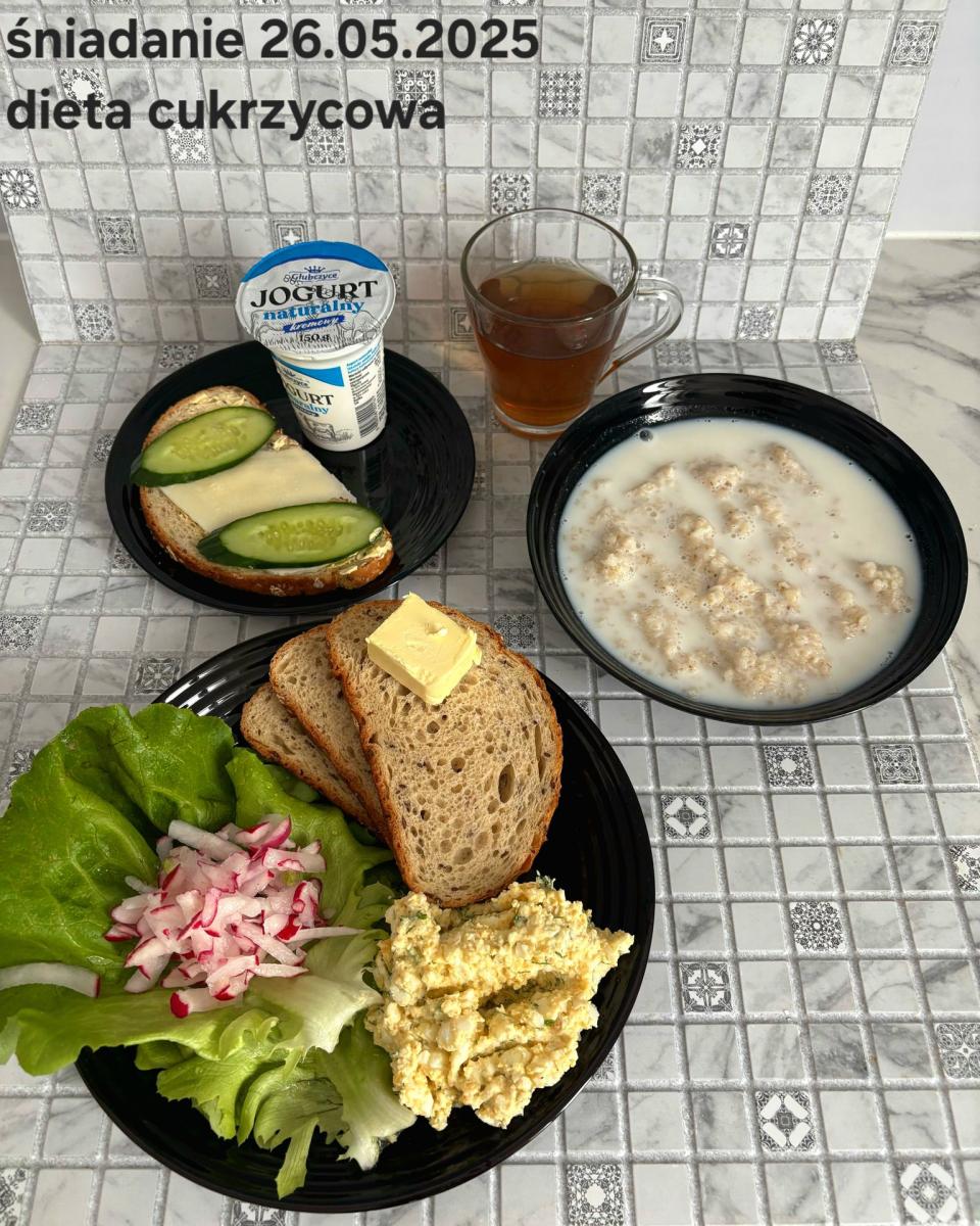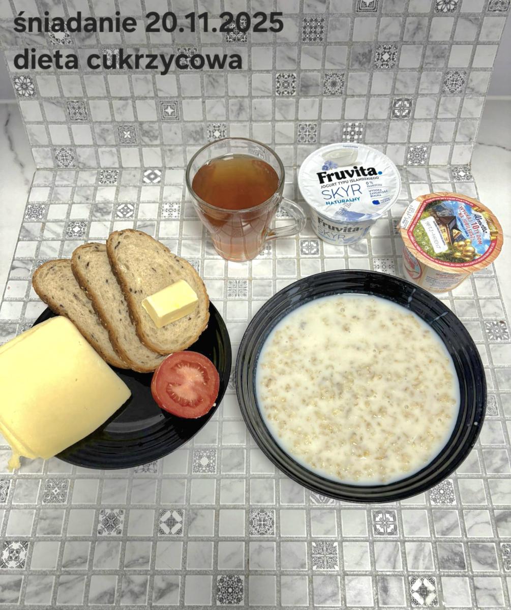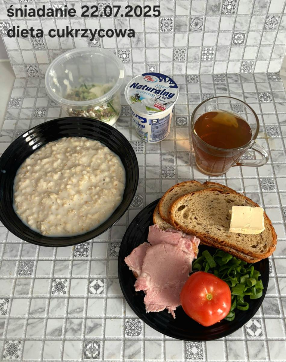 C: Zamiast płatków jęczmiennych- PŁATKI OWSIANE (1) (50g) CHLEB ŻYTNI RAZOWY(1)- 150g Herbata bez dodatku cukru