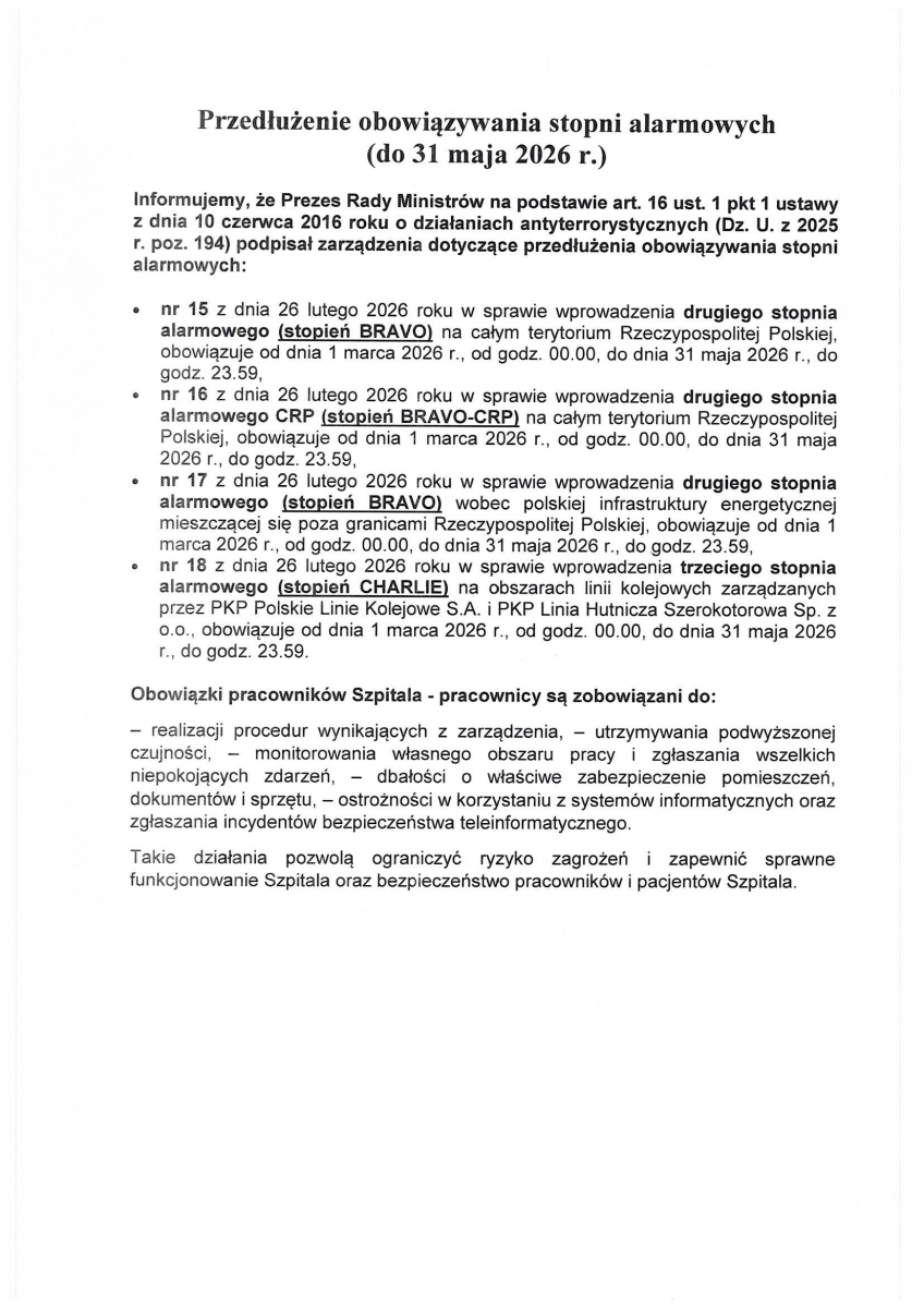 Oświadczenie dotyczące zawieszenia oddziału położniczo-ginekologicznego.