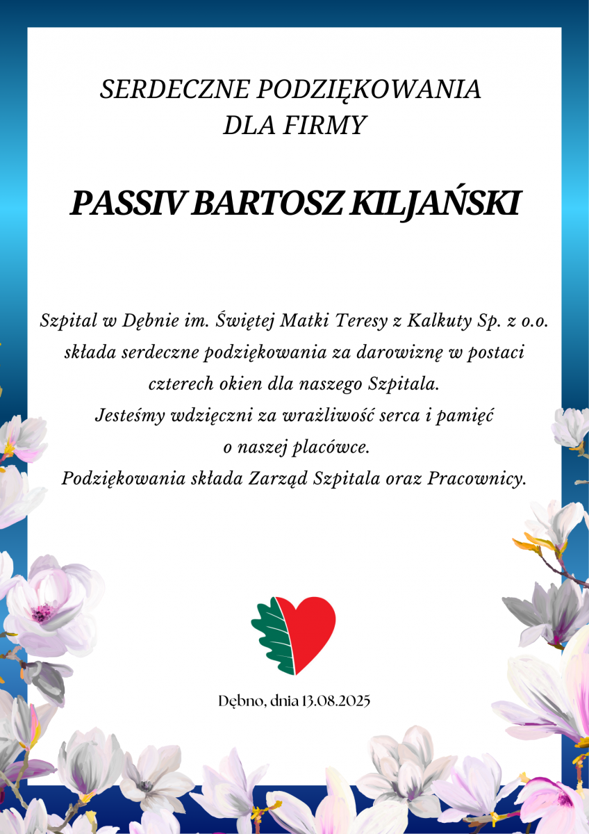 Serdeczne podziękowania dla firmy PASSIV Bartosz Kilijański.