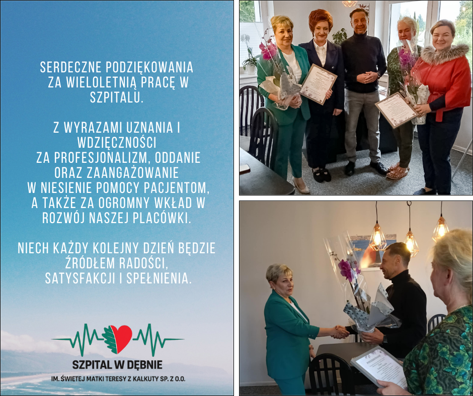 Serdeczne podziękowania za wieloletnią pracę w Szpitalu.