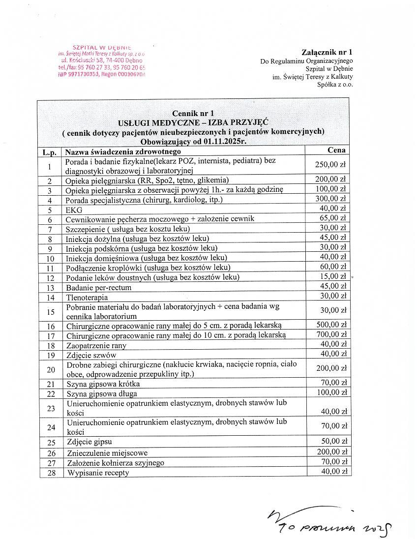 CENNIK BĘDZIE OBOWIĄZYWAŁ