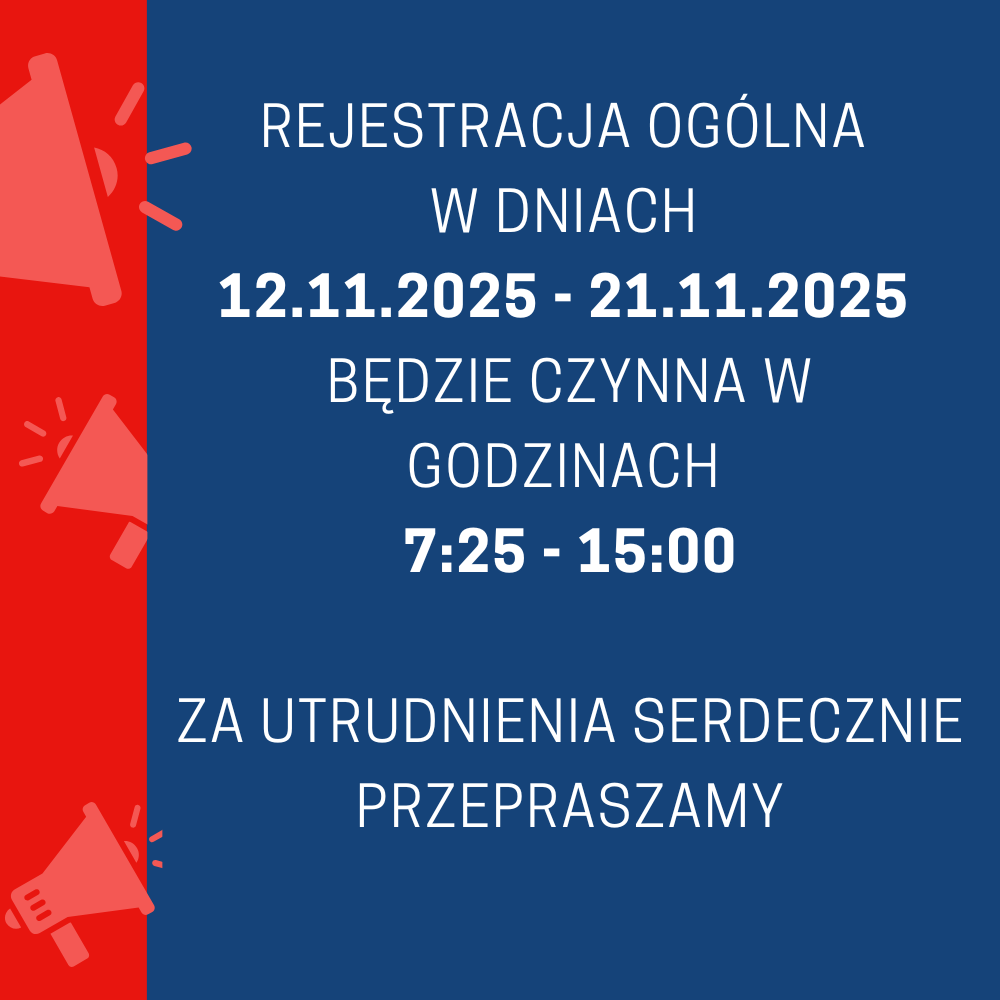 Uwaga! Zmiana godzin pracy Rejestracji.