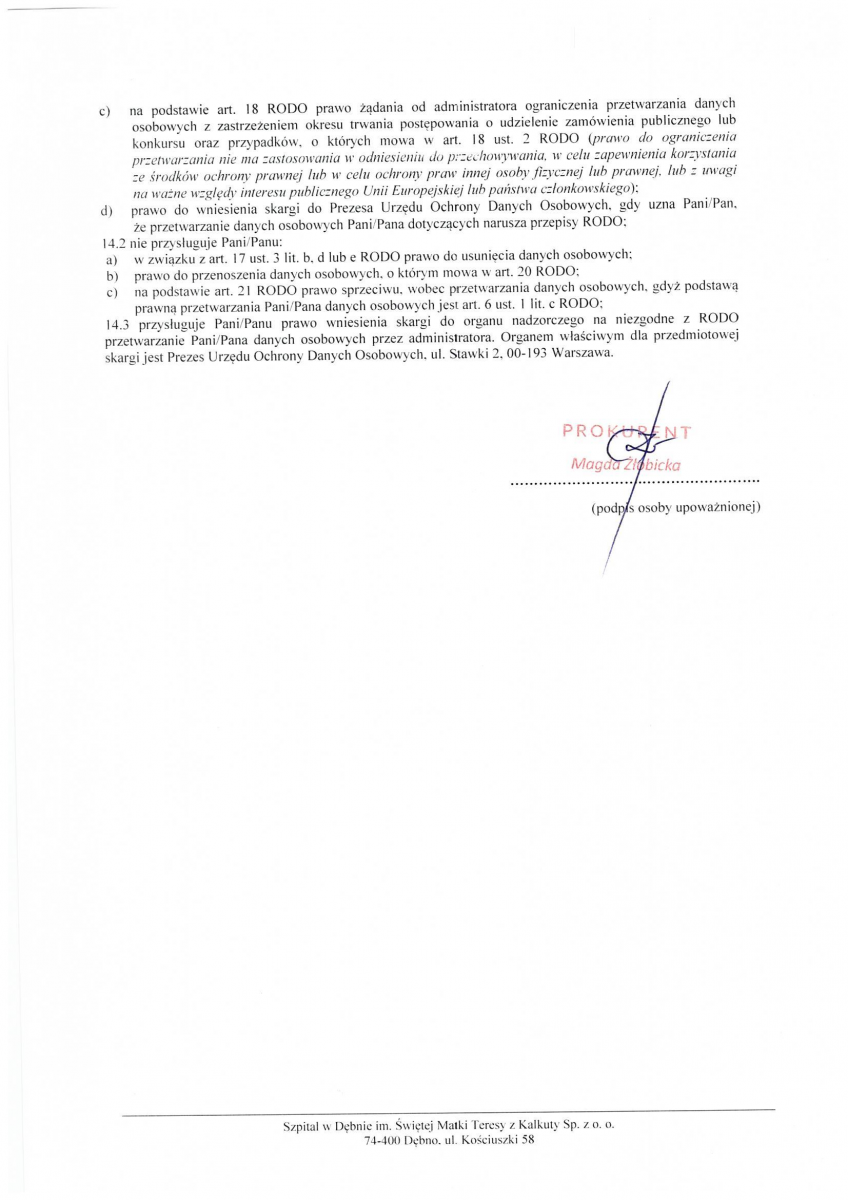 OGŁOSZENIE WYNIKÓW KONKURSU NA STANOWISKO PREZESA ZARZĄDU SPÓŁKI SZPITAL W DĘBNIE IM. ŚWIĘTEJ MATKI TERESY Z KALKUTY SP. Z O.O.