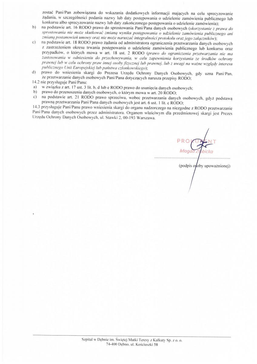 OGŁOSZENIE WYNIKÓW KONKURSU NA STANOWISKO PREZESA ZARZĄDU SPÓŁKI SZPITAL W DĘBNIE IM. ŚWIĘTEJ MATKI TERESY Z KALKUTY SP. Z O.O.