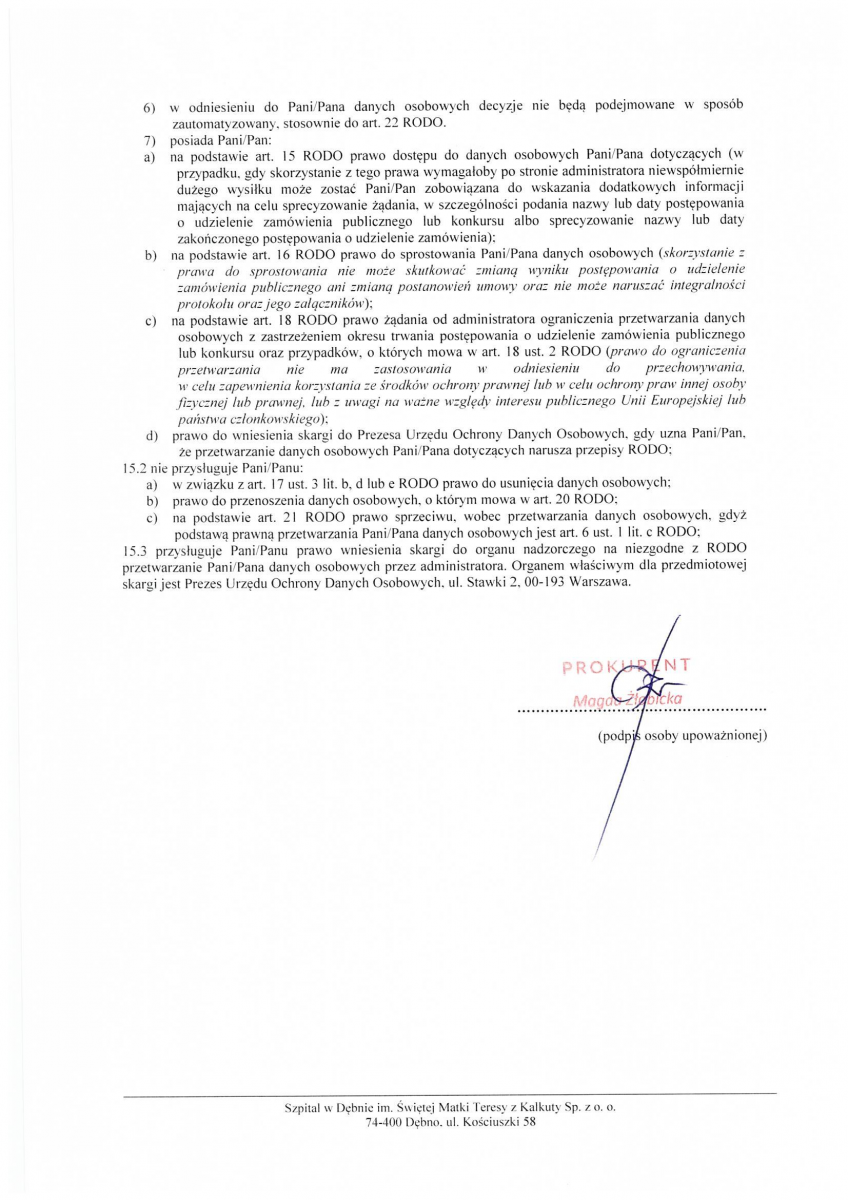 OGŁOSZENIE WYNIKÓW KONKURSU NA STANOWISKO PREZESA ZARZĄDU SPÓŁKI SZPITAL W DĘBNIE IM. ŚWIĘTEJ MATKI TERESY Z KALKUTY SP. Z O.O.