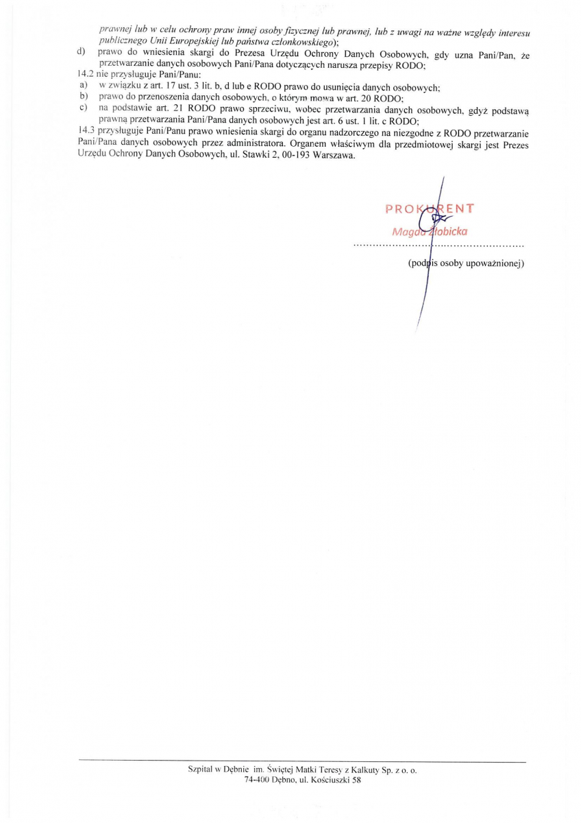 OGŁOSZENIE WYNIKÓW KONKURSU NA STANOWISKO PREZESA ZARZĄDU SPÓŁKI SZPITAL W DĘBNIE IM. ŚWIĘTEJ MATKI TERESY Z KALKUTY SP. Z O.O.